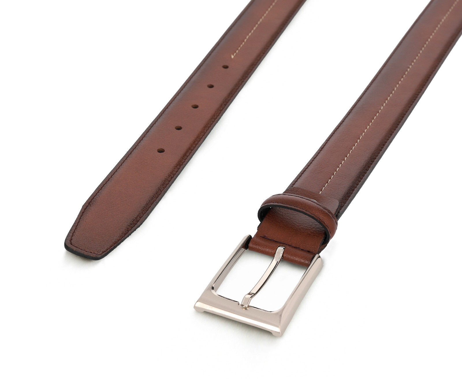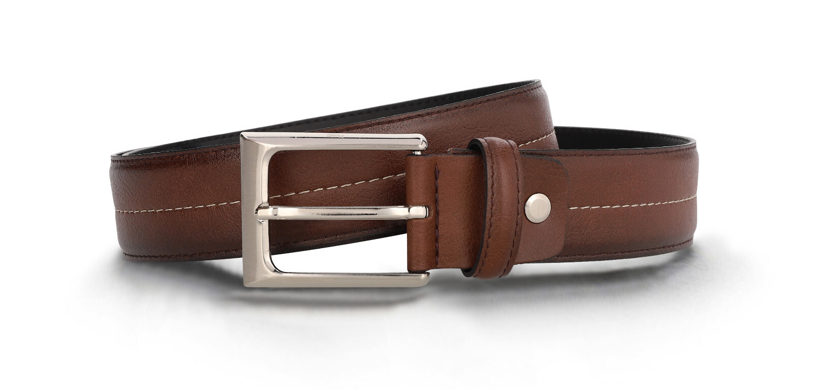 Mens belt classic with central stitching vegan leather buckle adjustable formal