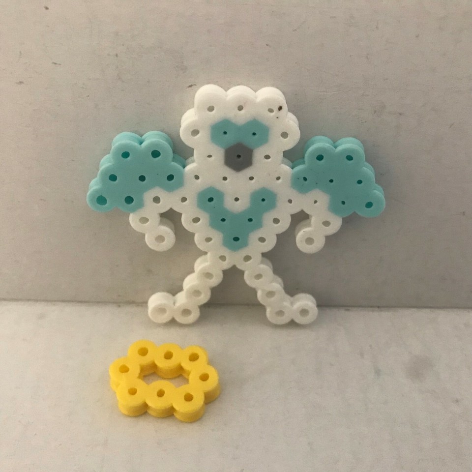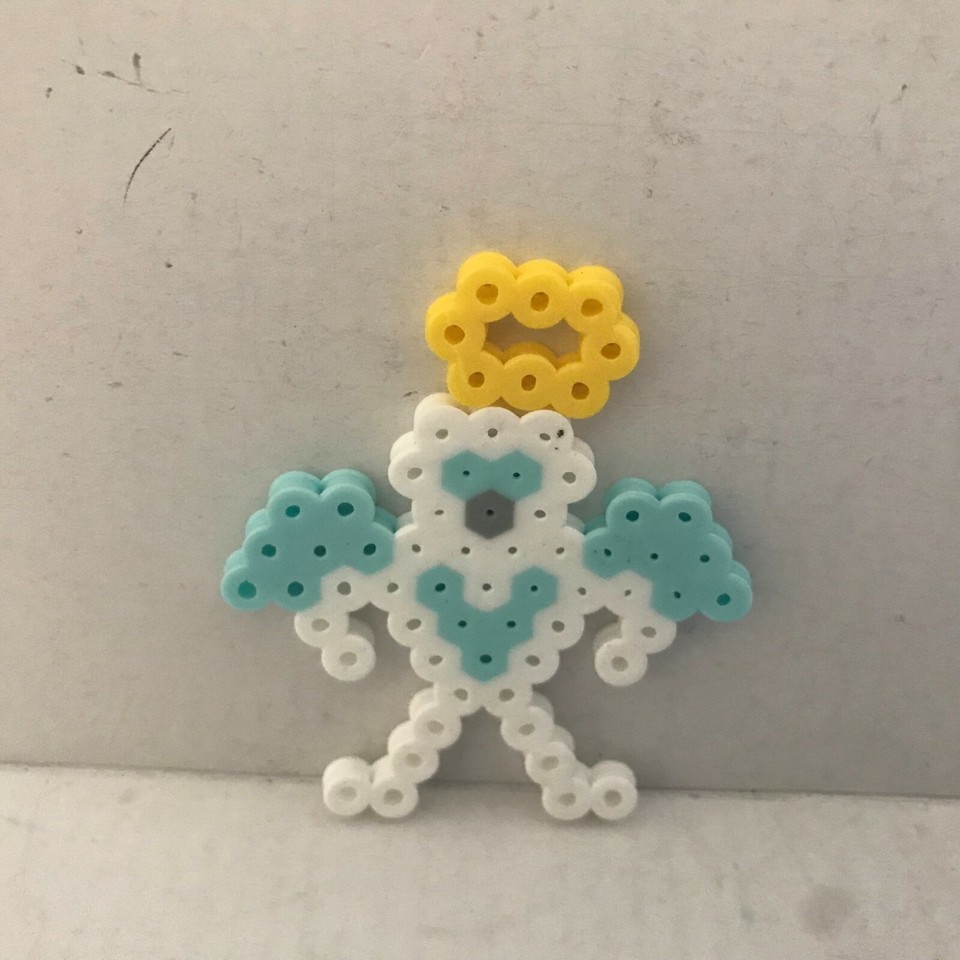 Daughter's Homemade Creation Perler Beads - Angel Halo Cloud Devil's Head Set. Daughter wanted to sell her character here. Unique one of a kind creation. Angel with detachable Halo along with traveling cloud. Includes Devil's head separated so I'm thinking the Angel won this battle.