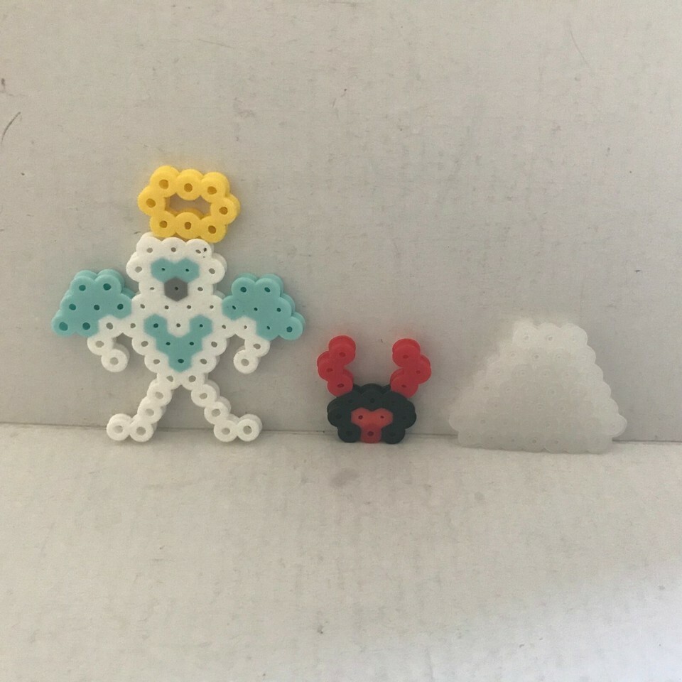 Daughter's Homemade Creation Perler Beads - Angel Halo Cloud Devil's Head Set