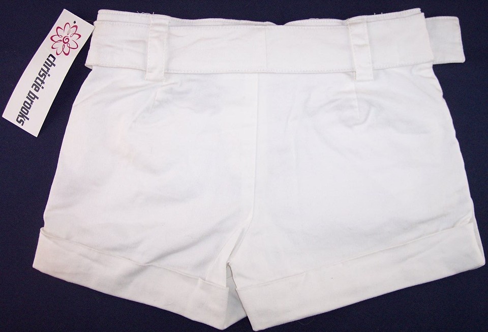 NWT Christie Brooks Girl's White Short Shorts with Belt, Size 7 or 8