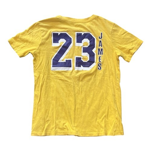Yellow Lakers #23 T-shirt (Size L 10-12) ? Soft cotton tee with printed logo and name/number design.