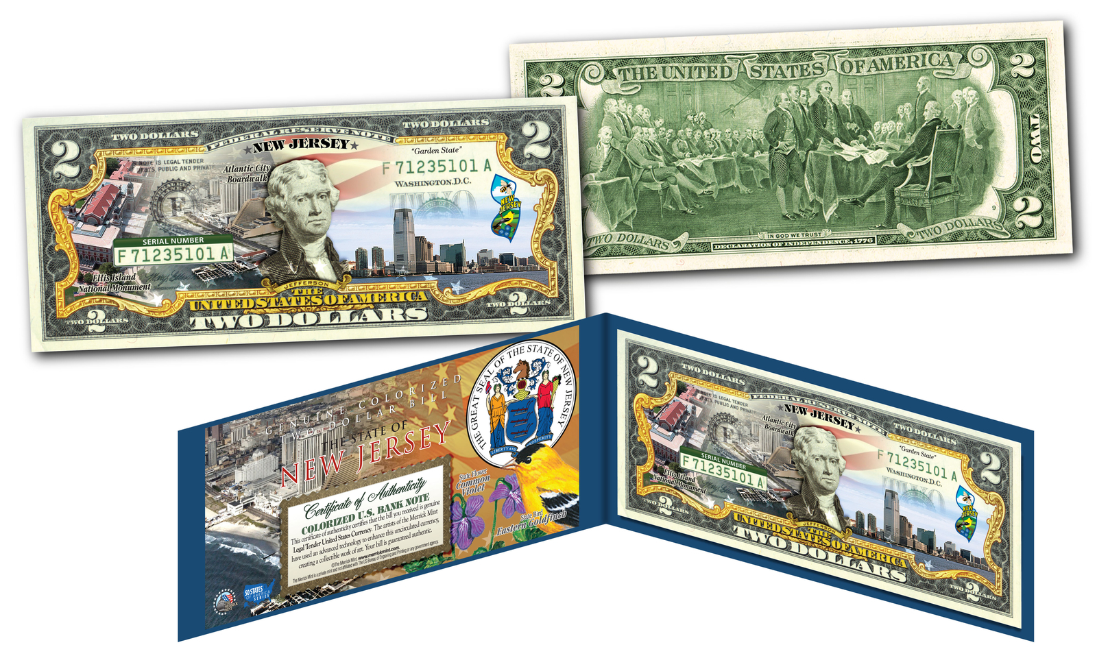 NEW JERSEY Genuine Legal Tender $2 Bill USA Honoring America's 50 States