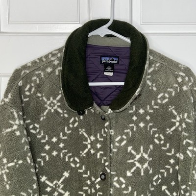 VTG Patagonia Sherpa Fleece Barn Chore Jacket Womens L Green USA Button Down