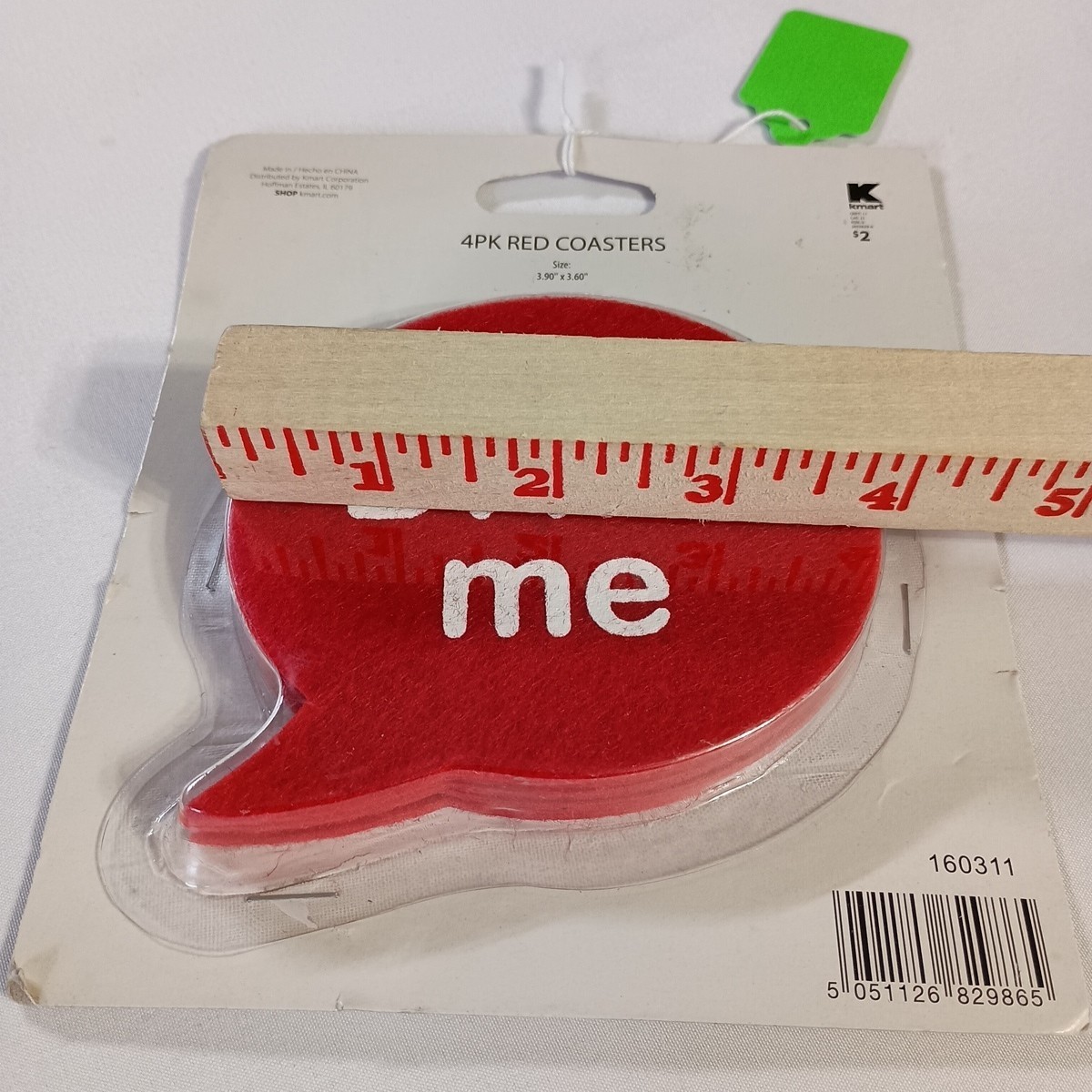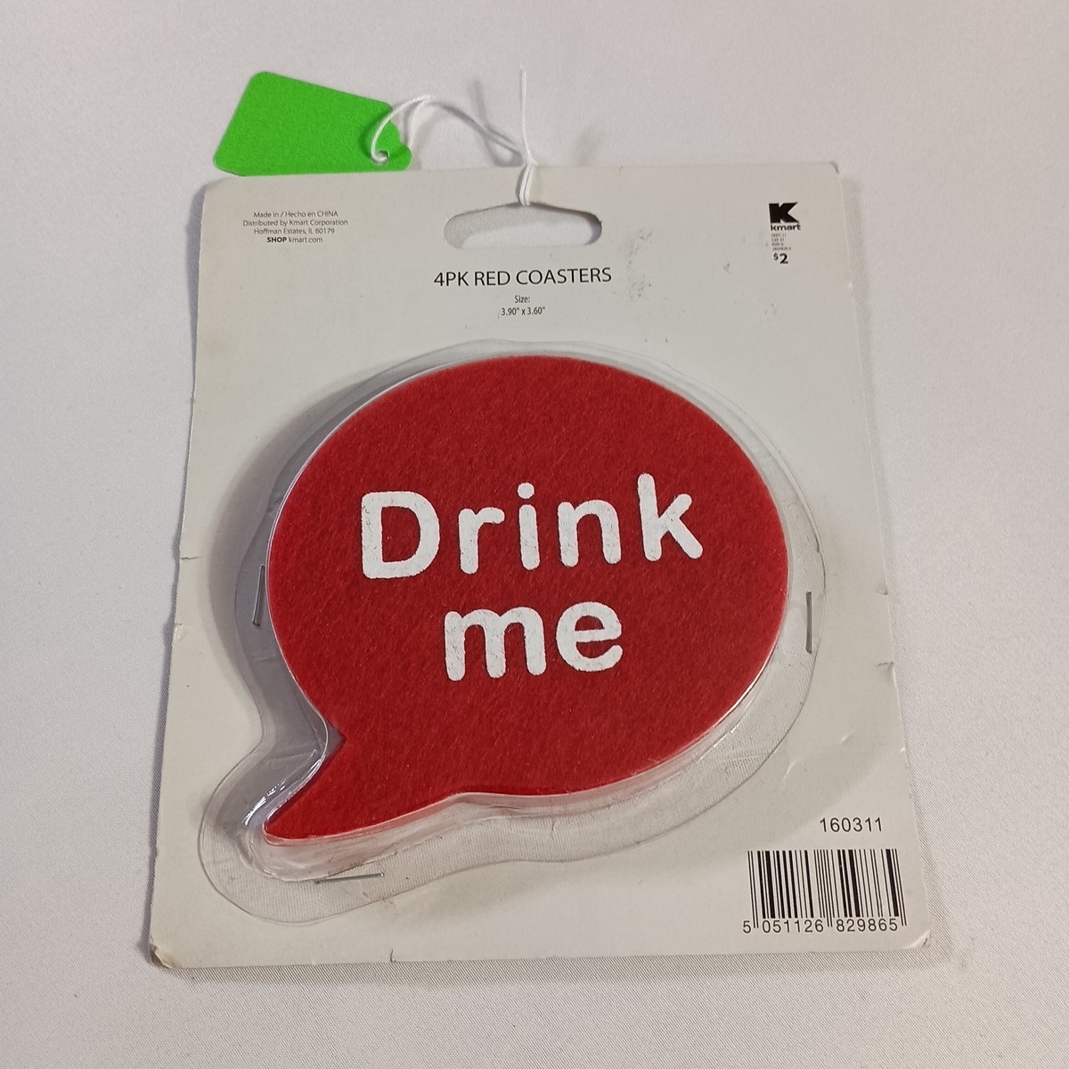 Vintage Drink Coasters 4Pk Red Drink Me Coasters K-Mart 1990s Y2K