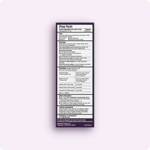 2 PACK Allegra Children's 12-Hour Allergy Relief Berry Flavor *10/2025* Liquid, Non-Drowsy Indoor, 16 fl oz Total