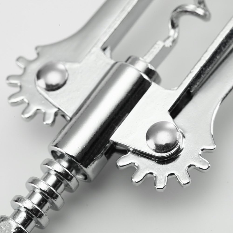COMBINING FUNCTION AND STYLE, this sturdy wine bottle opener feels substantial in the hand and looks elegant on the table. Wine connoisseurs find it foolproof and efficient, simply place the wine corkscrew opener over the bottle, twist the handle to insert the auger into the cork, and watch the opener's wings rise. Then press the wings down to extract the cork. A coated wire screw glides smoothly through the cork, and a stopper prevents the screw from breaking the cork.