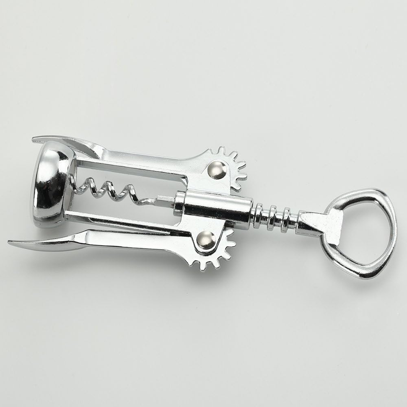 This HQY Winged Corkscrew is an essential tool for a home bar or kitchen. This corkscrew features double levers, a spiral worm and a cap lifter in the handle. The corkscrew includes a bottle opener at the top. This corkscrew is made from zinc alloy material. This product is completely dishwasher safe for easy cleanup.
