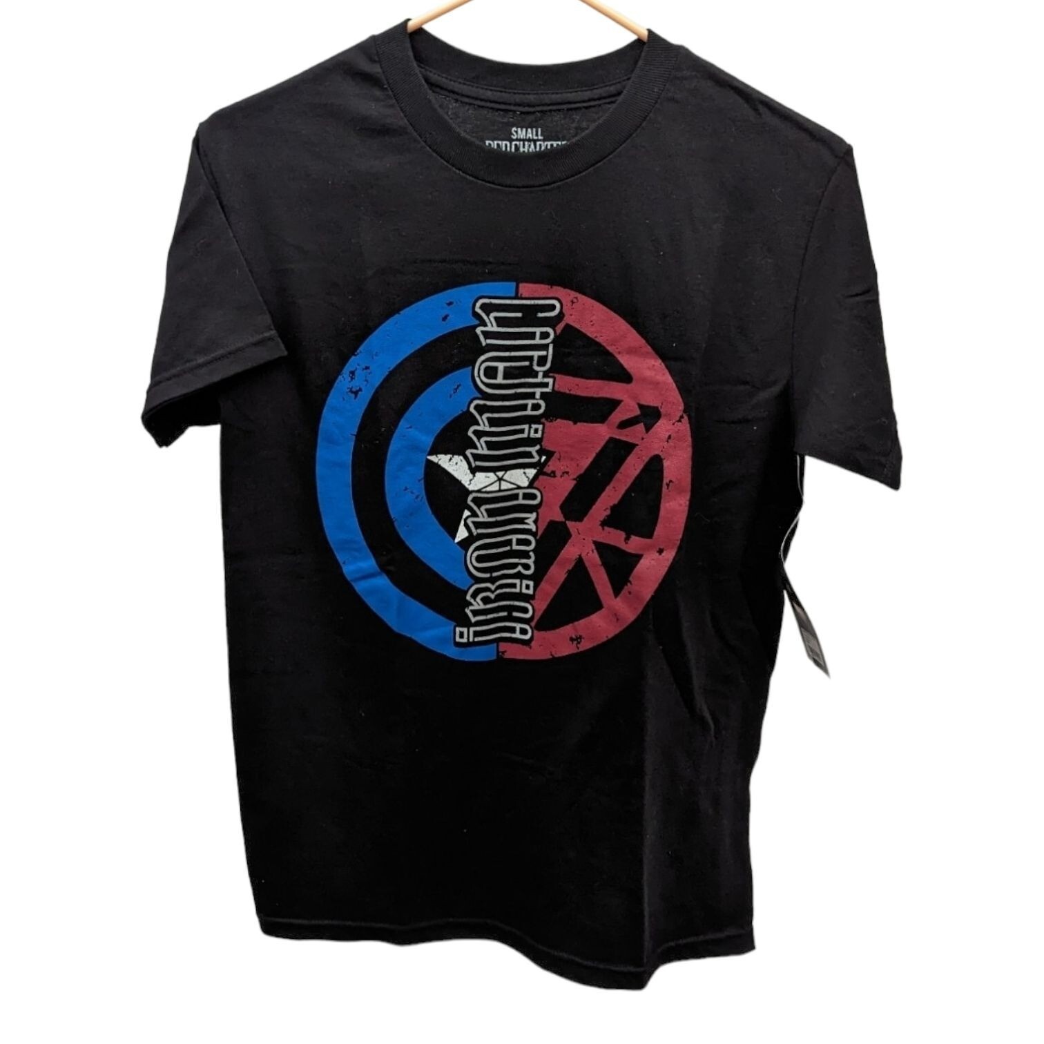 Brand new with tags. One way reads "Iron Man" and sideways it reads "Captain America." Clever design. Available in Small, Medium, and Large sizes. See photos for details.