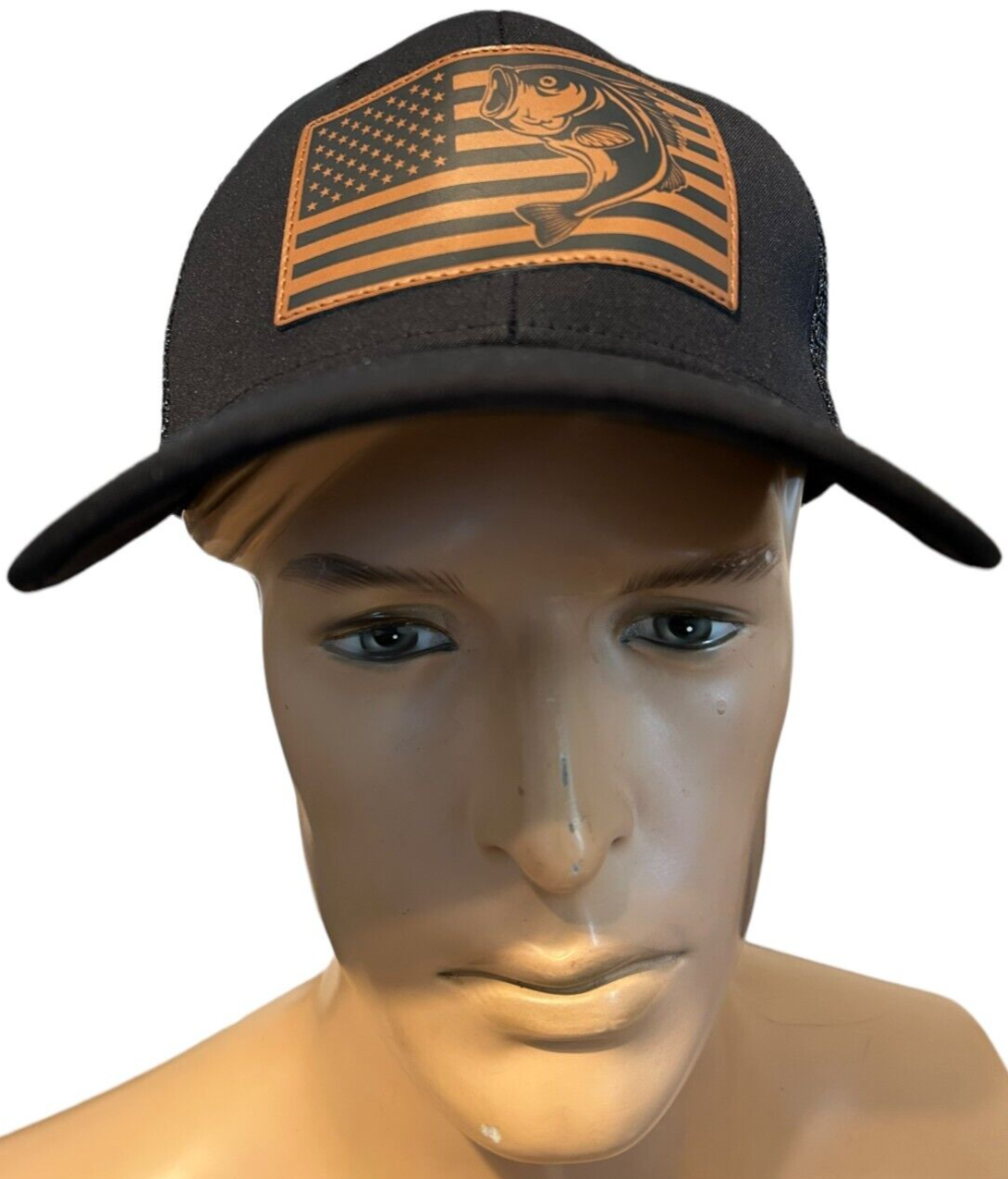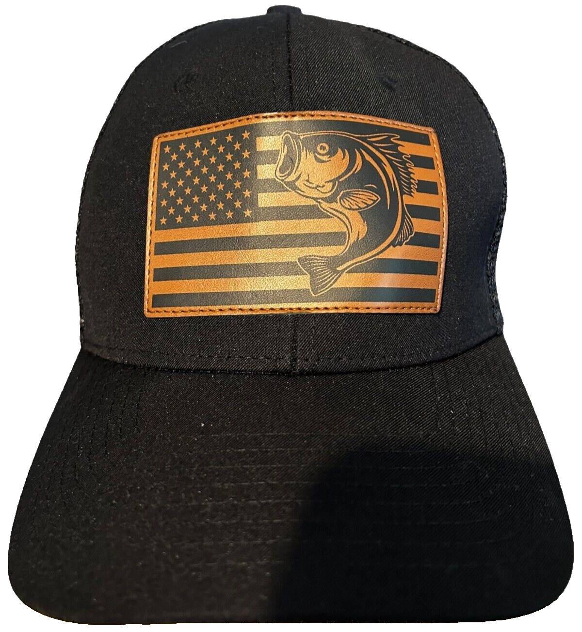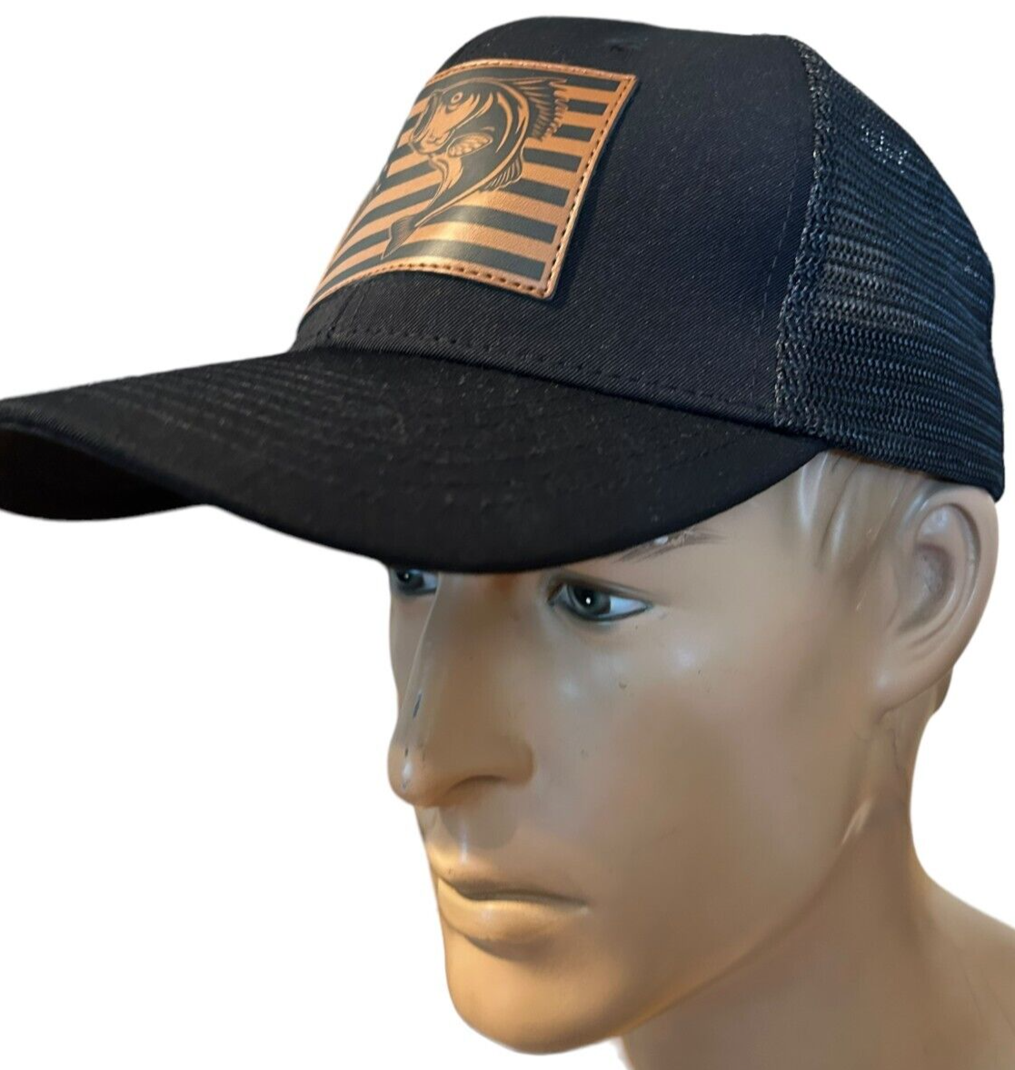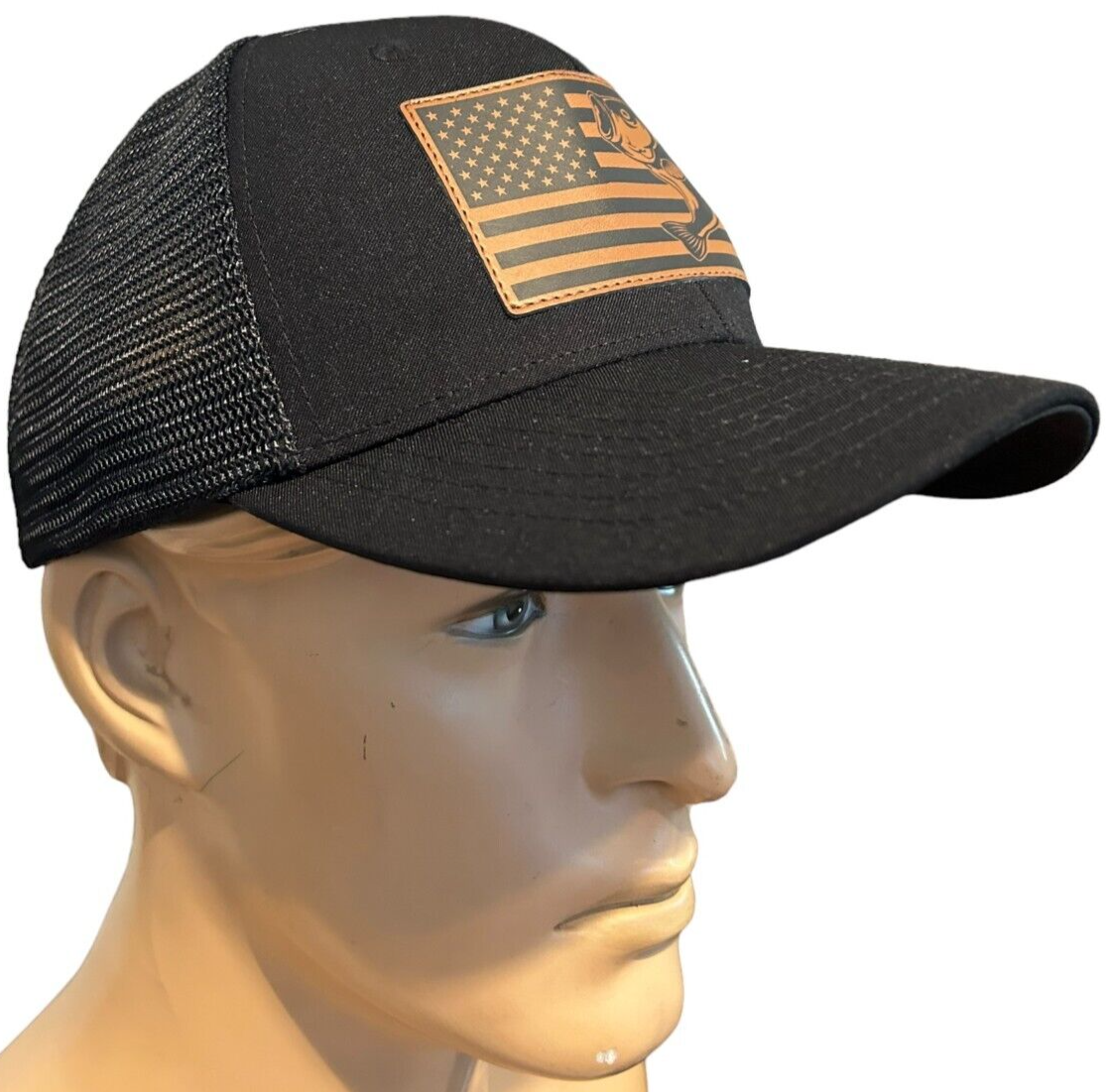 DOEO JNSPO Unique USA Flag w/Fish Trucker Hat Black w/ Tan Patch Mesh Snapback