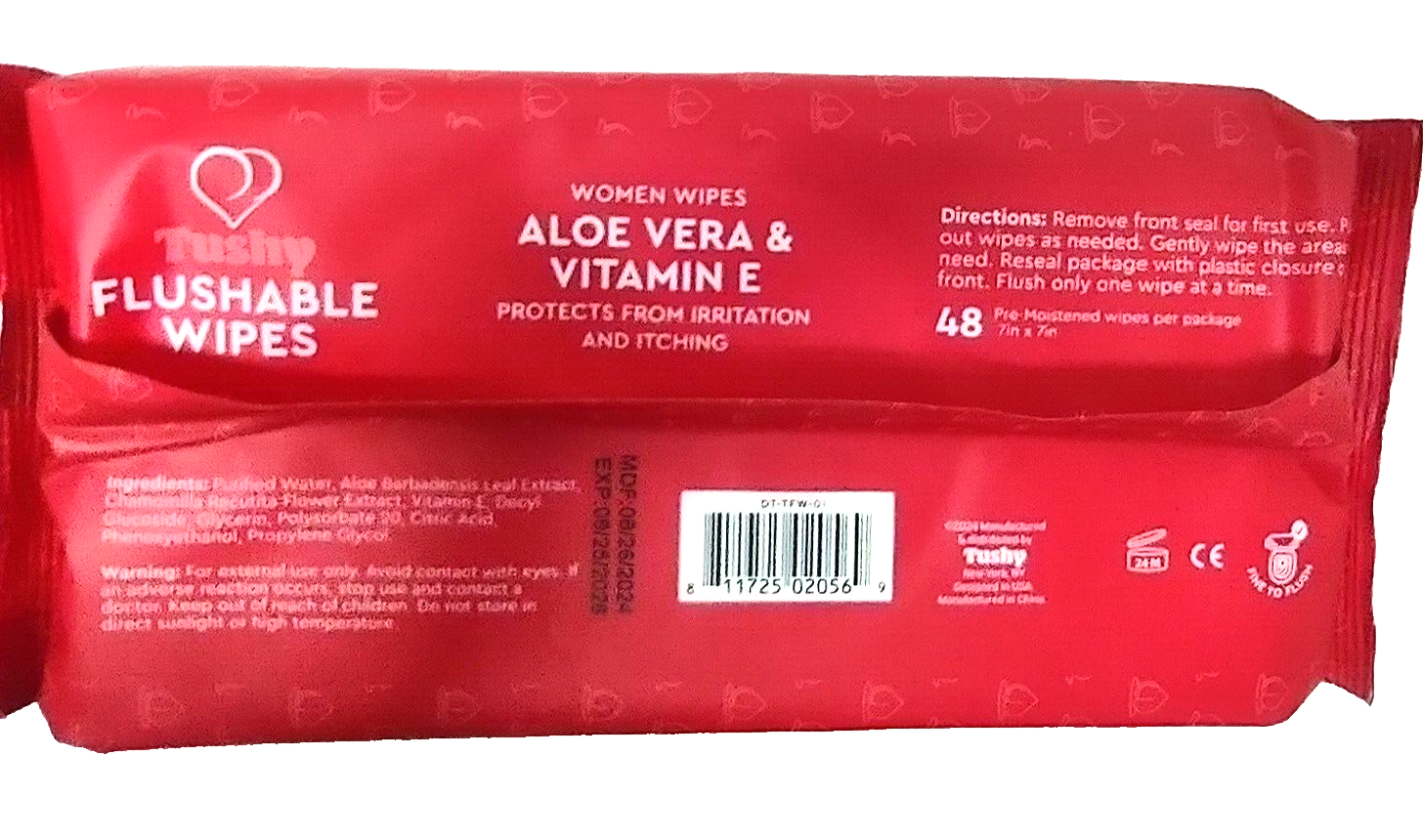 ( 10 PACK ) Tushy Women Aloe Vera & Vitamin E 48-ct/pack Flushable Wipes SEALED