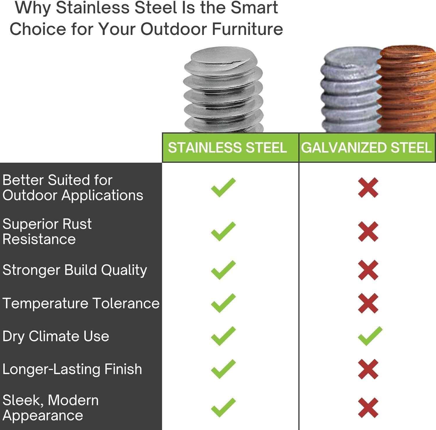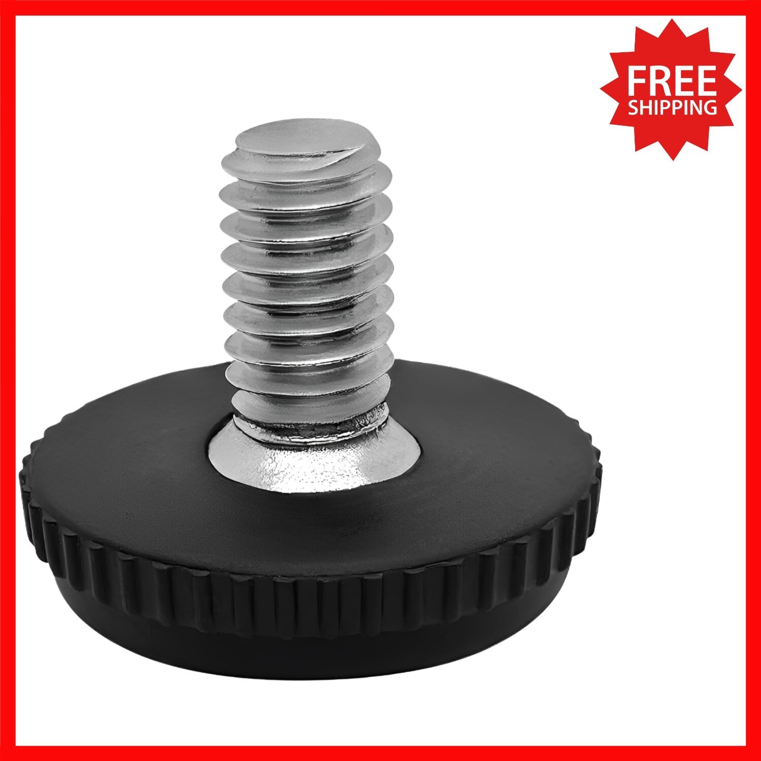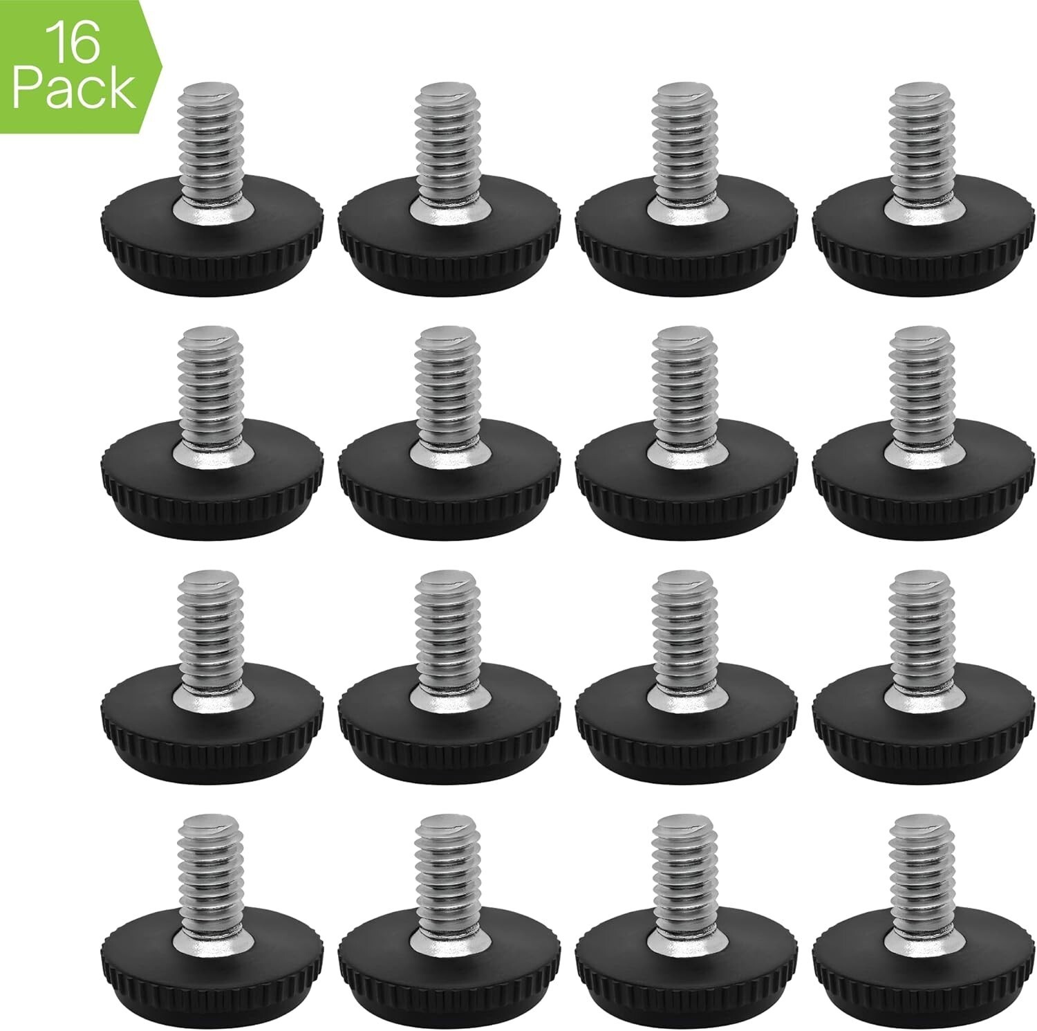 Enhance and protect your furniture with these versatile 5/16-18 adjustable furniture feet, compatible with most American brands. Crafted from durable stainless steel, they resist corrosion and rust better than galvanized steel options. Featuring a 5/16" diameter shaft, 18 threads per inch, and a 9/16" threaded stud length, these replacement glides have a 1" diameter non-marking nylon base that safeguards your floors. Ideal for tables, chairs, patio furniture, and appliances, they reduce friction and noise, facilitate easy movement, and can be adjusted for a wobble-free setup. To ensure the perfect fit, compare your current feet with a hardware store nut before ordering.