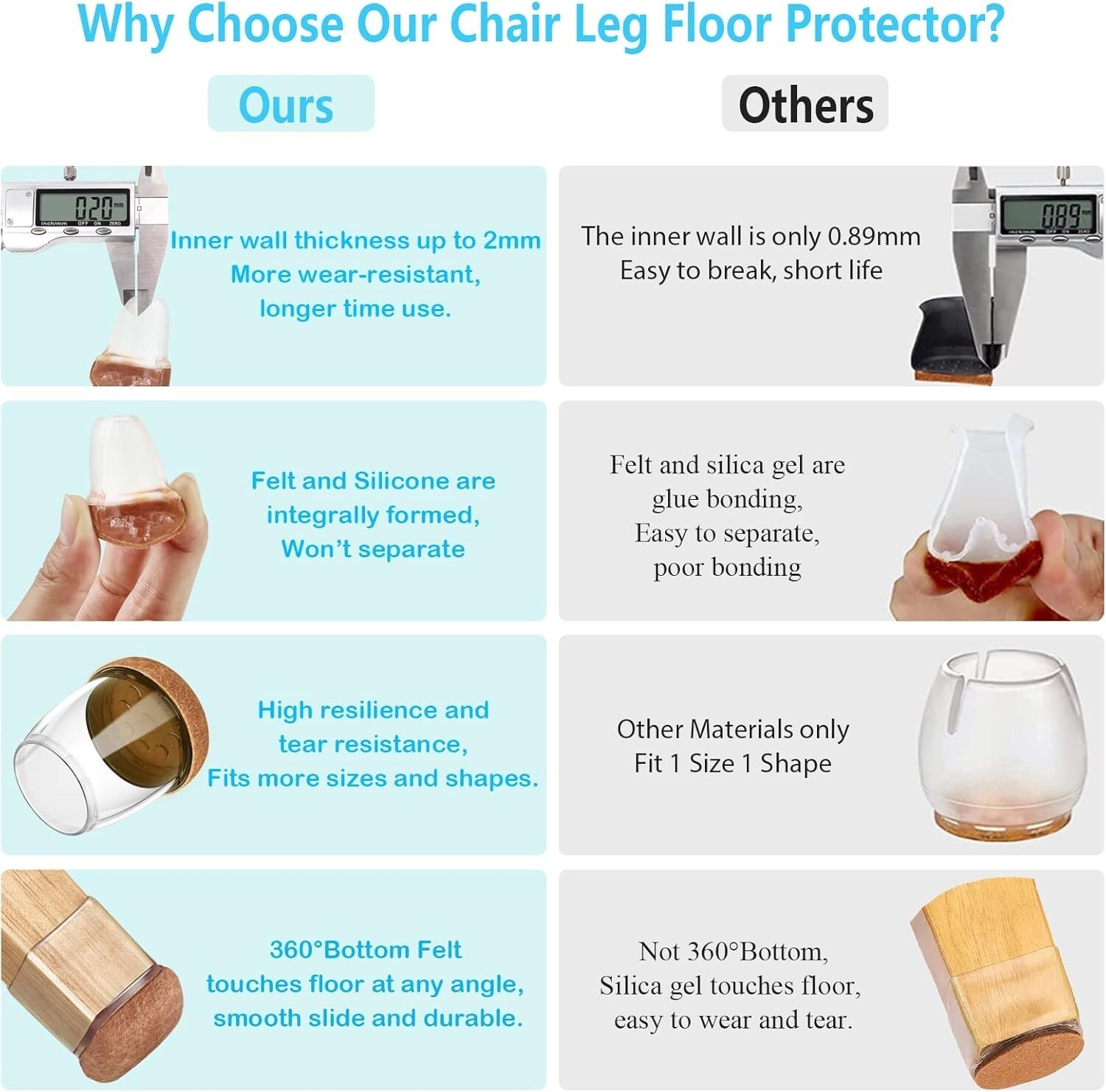 Versatile 16 Pack Chair Leg Caps - Non-Slip Protectors for All Furniture Types