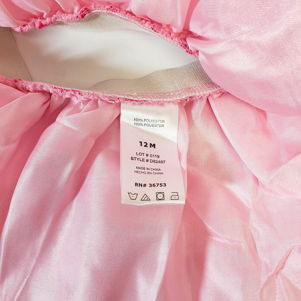 The pink skirt doesn't have a brand. Size 12 months. The pink has textured darker pink bows. (Super cute)
