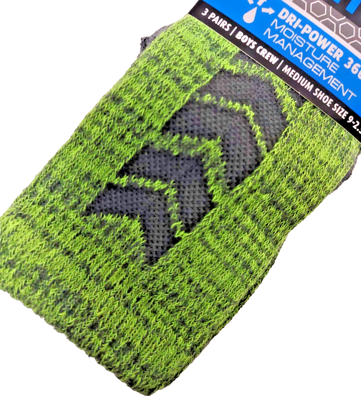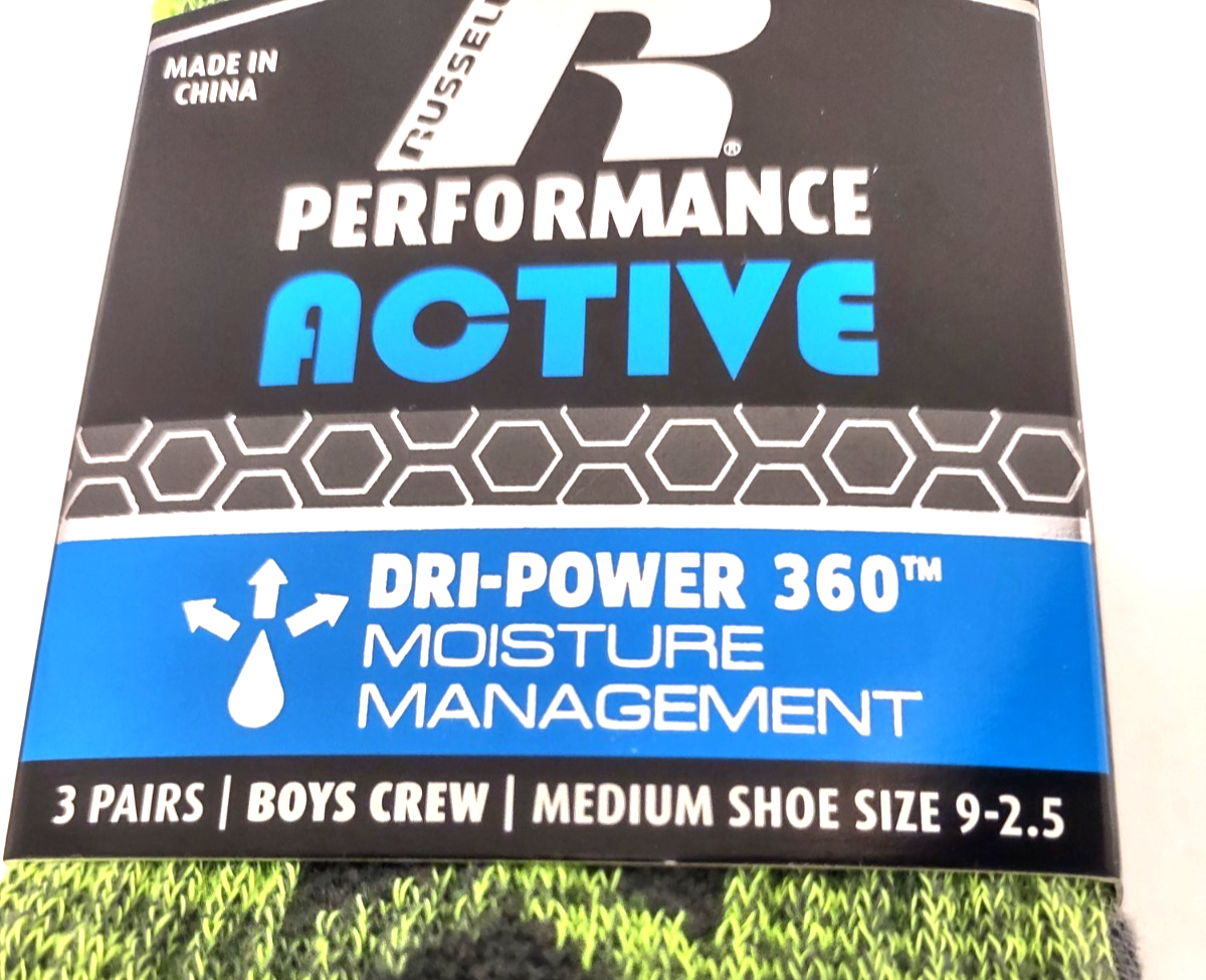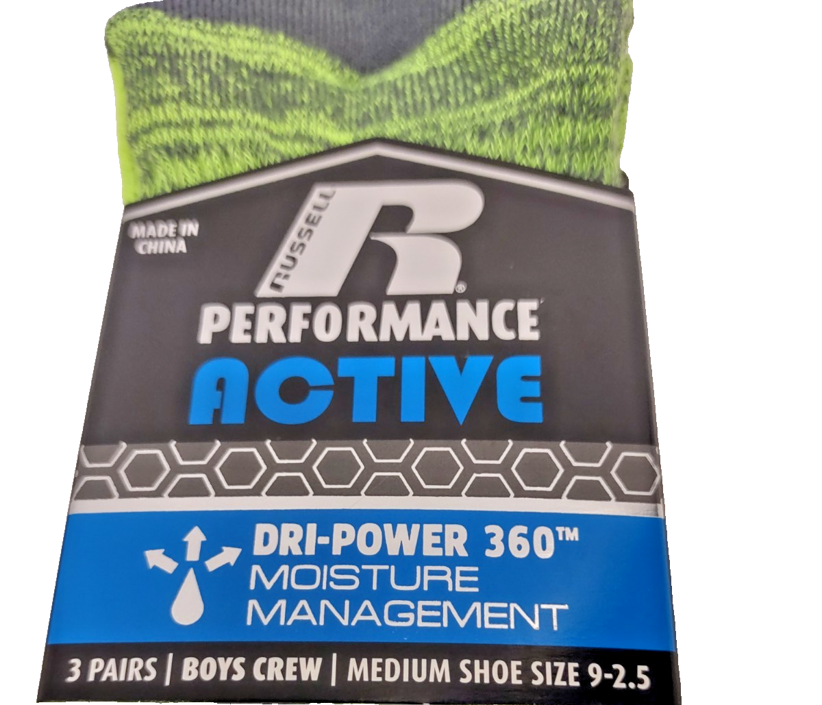 3Pairs Russell® Performance Active DRI-POWER 360 Boys Crew Socks M Shoe Sz 9-2.5