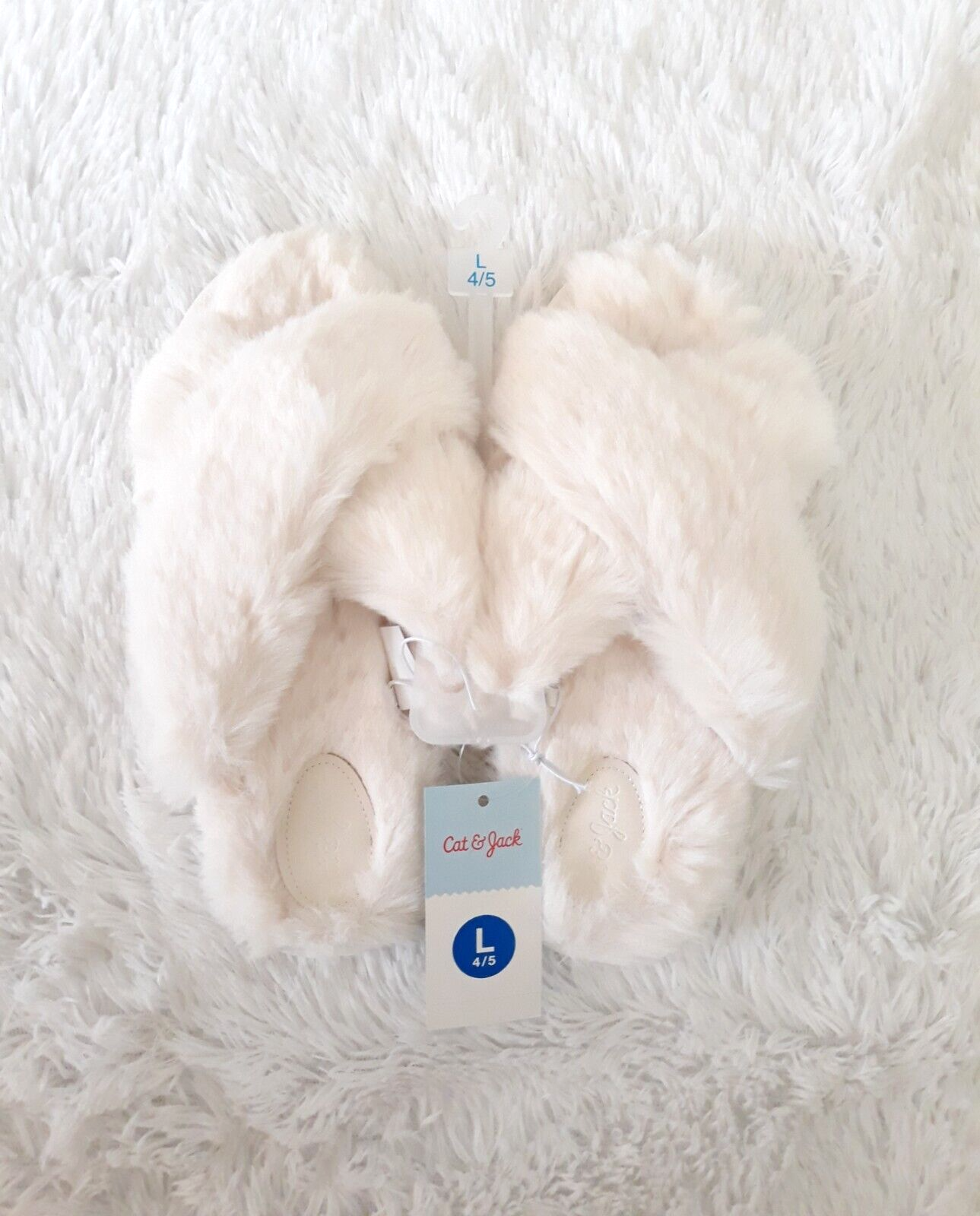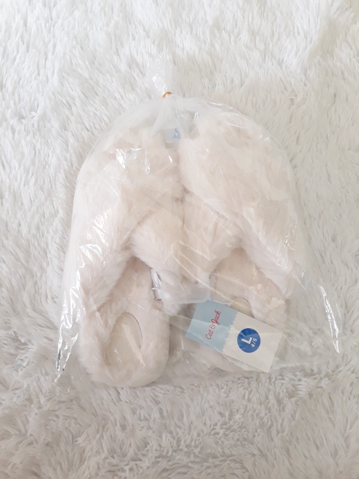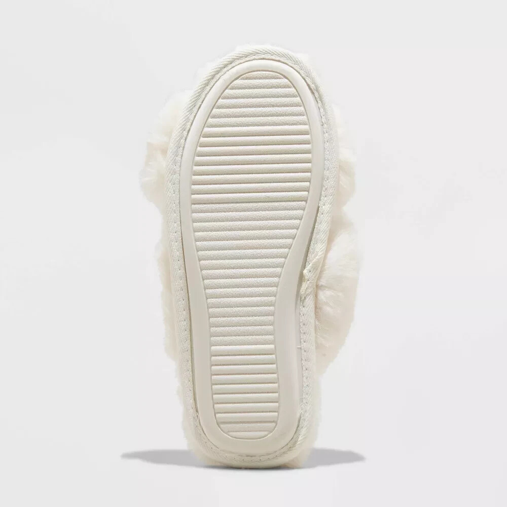 Cat & Jack Girls Soft & Furry Cross Front Slide Slippers (Size L/4-5) Cream ~NEW
