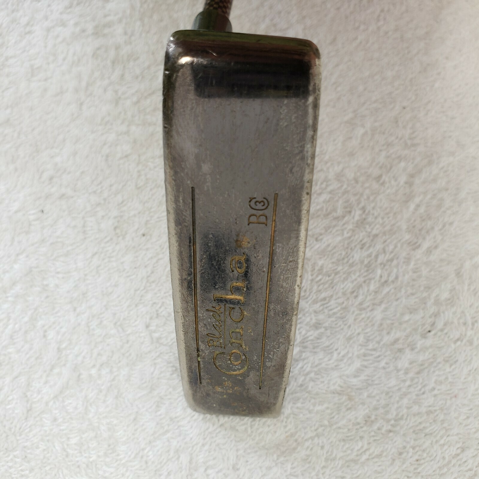 Black Concha BC3 Golf Putter Right Handed 35" Golf Club. The end of the grip has been shaved down to fit a ball suction on the end of the putter. - Images shows the actual putter that will ship.