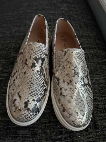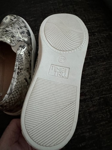 These Time and Tru slip on metallic snake print shoes are in excellent condition as they have never been worn. They feature: