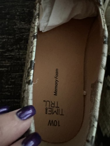 Time and Tru Slip on Memor Foam Metallic Snake Print SZ 10W NWOB
