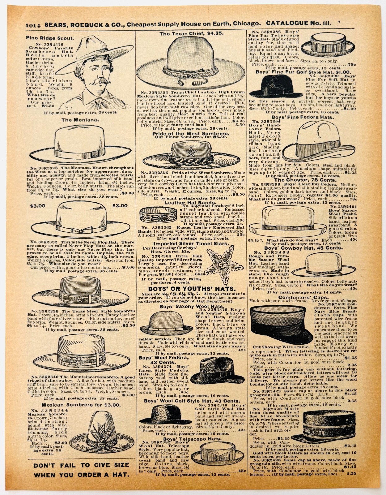 1969 Men's Assorted Hats 1901 Repro Advertisement Sears Fashion Clothing DWU17E