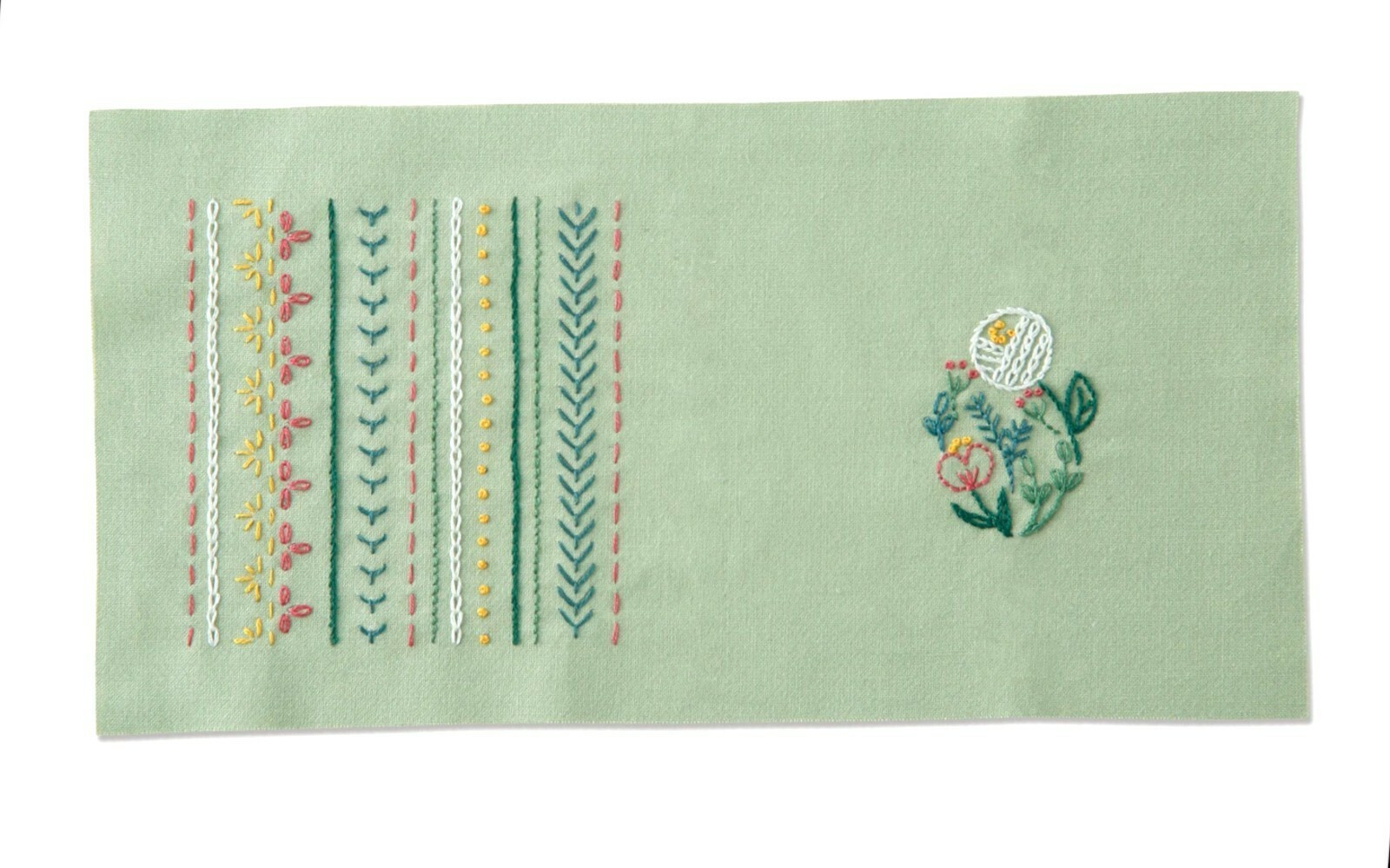 This embroidery stitch learning kit level one teaches you 9 basic stitches.