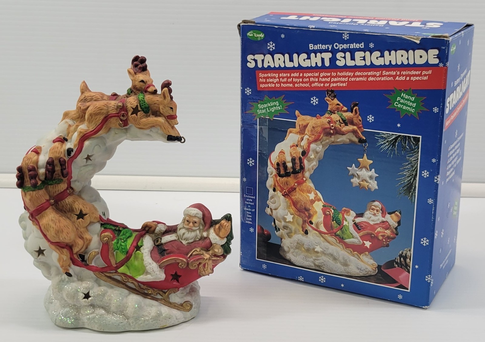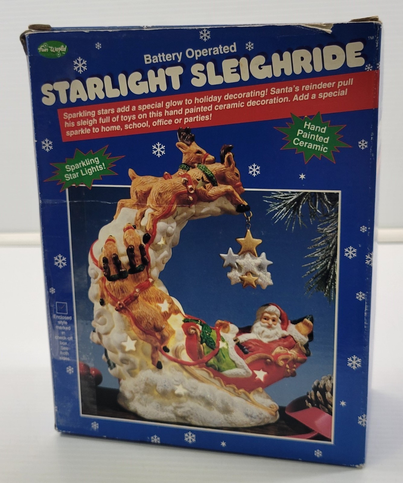 Vintage Fun World Starlight Sleighride Ceramic Battery Operated Light Up Christmas Decoration