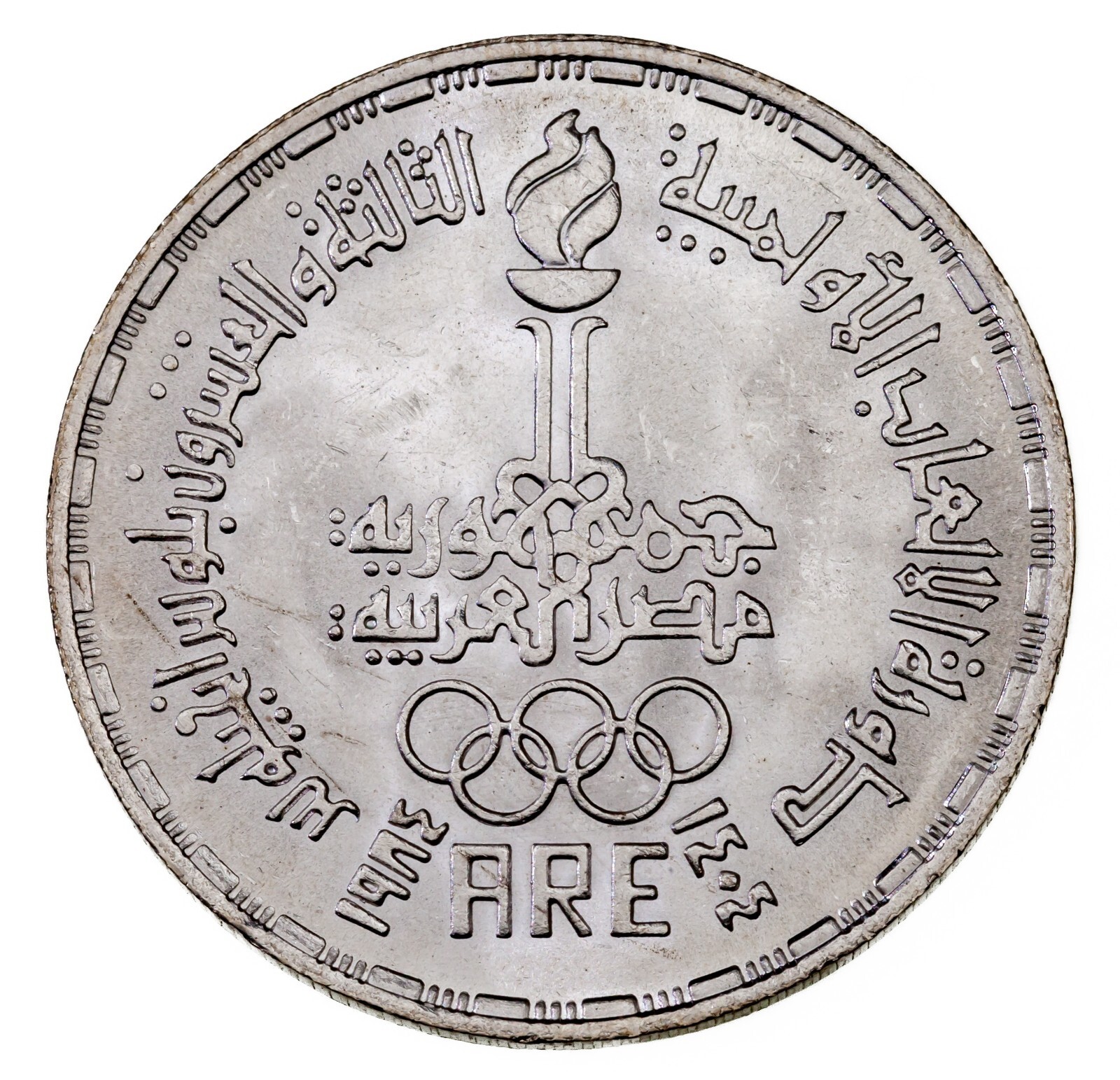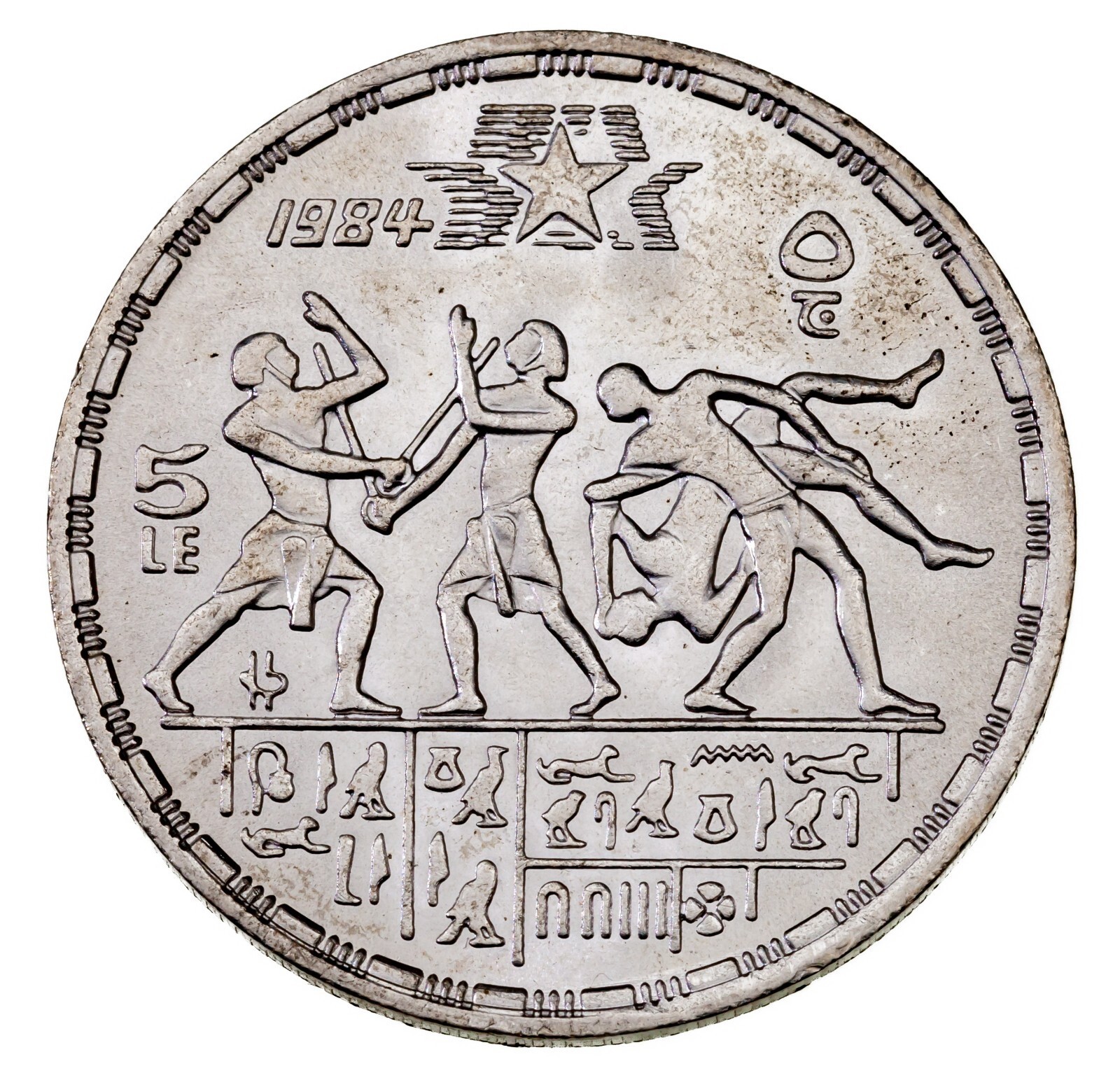 1404-1984 Egypt 5 Pounds Silver coin in BU, Los Angeles Olympics KM 558