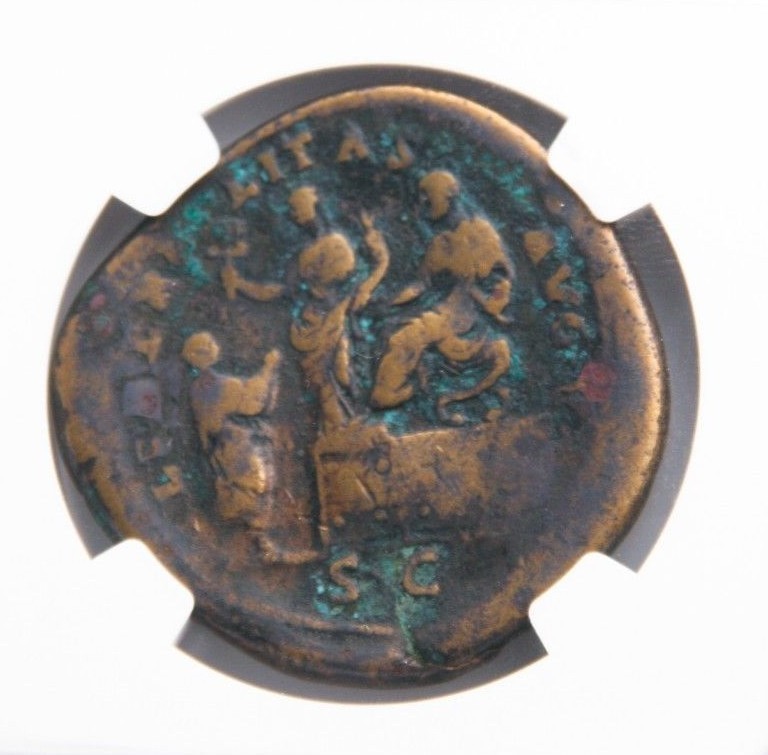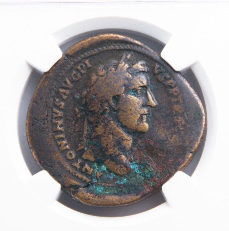 138-161 AD Roman Empire AE Sestertius Antoninus Pius Graded by NGC as F RIC#775