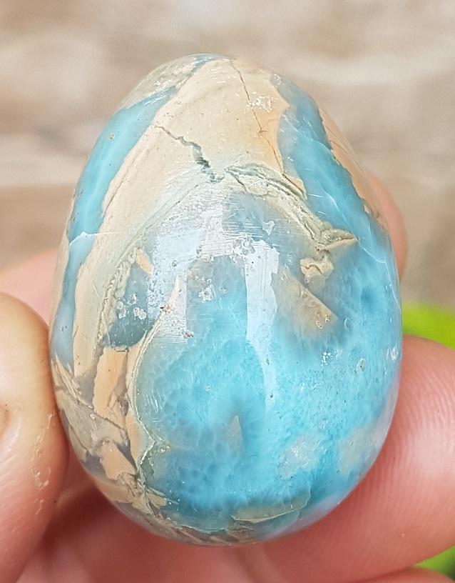 ORIGINAL LARIMAR EGG handcarved Gemstone for decoration 38 grams (p-4)
