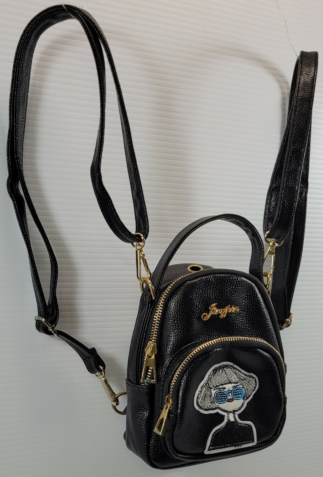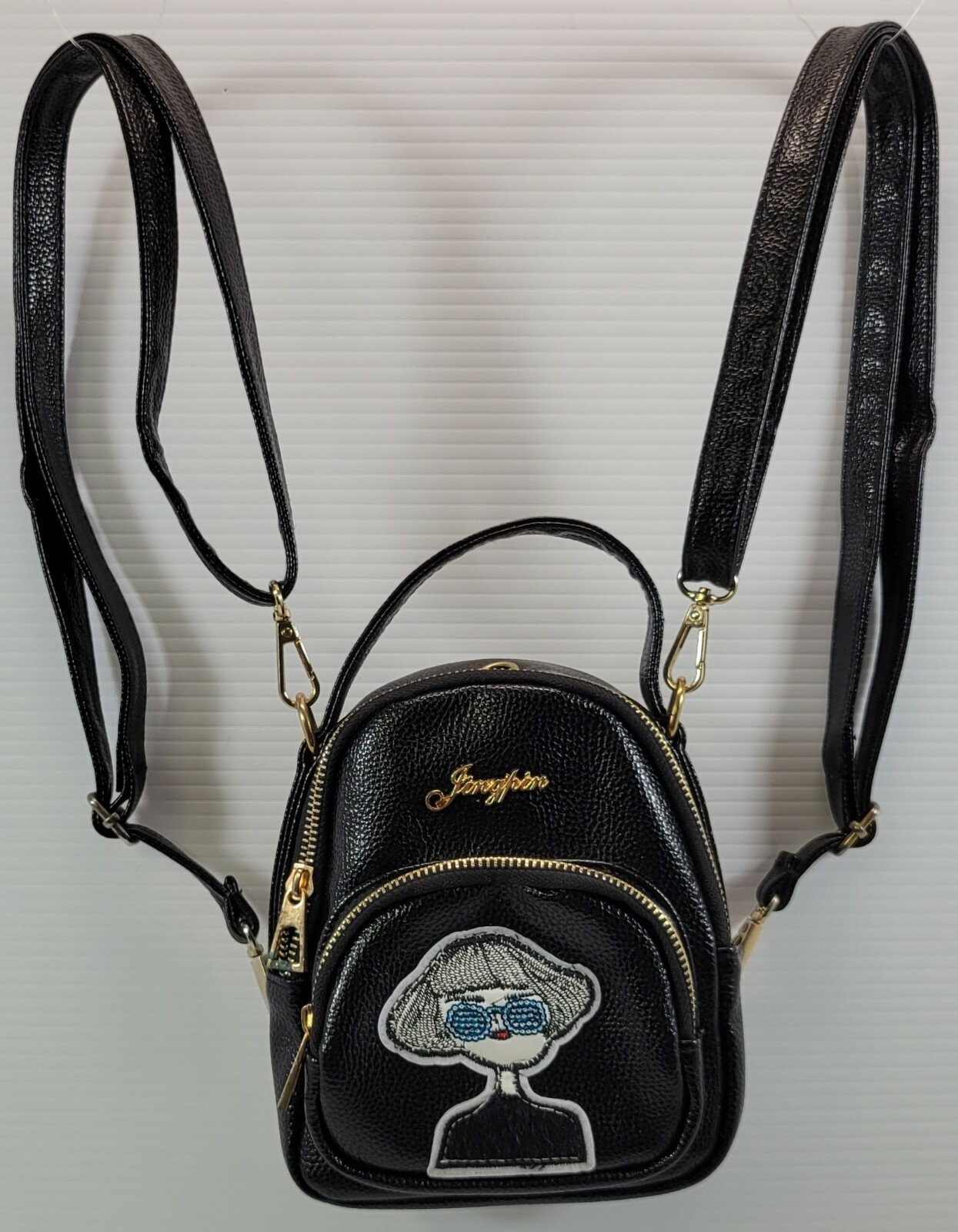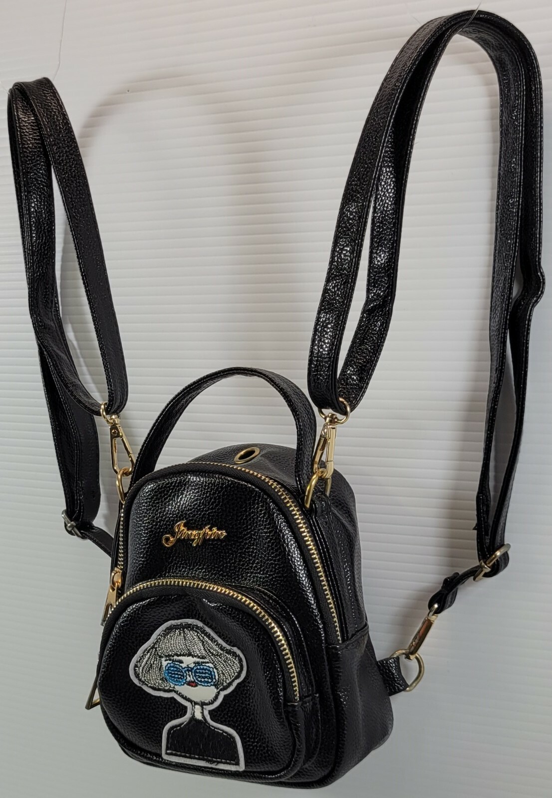 MM) Women's Jingpin Faux Black Leather Mini Backpack