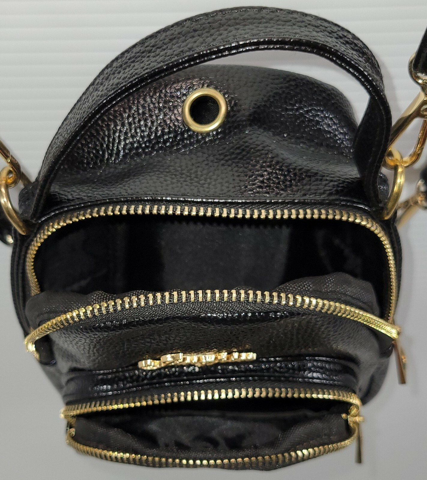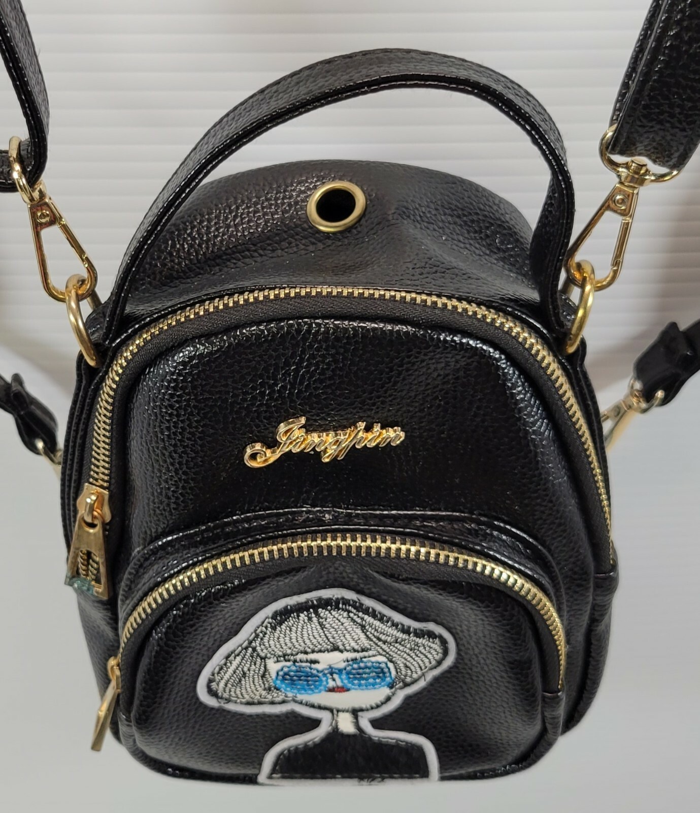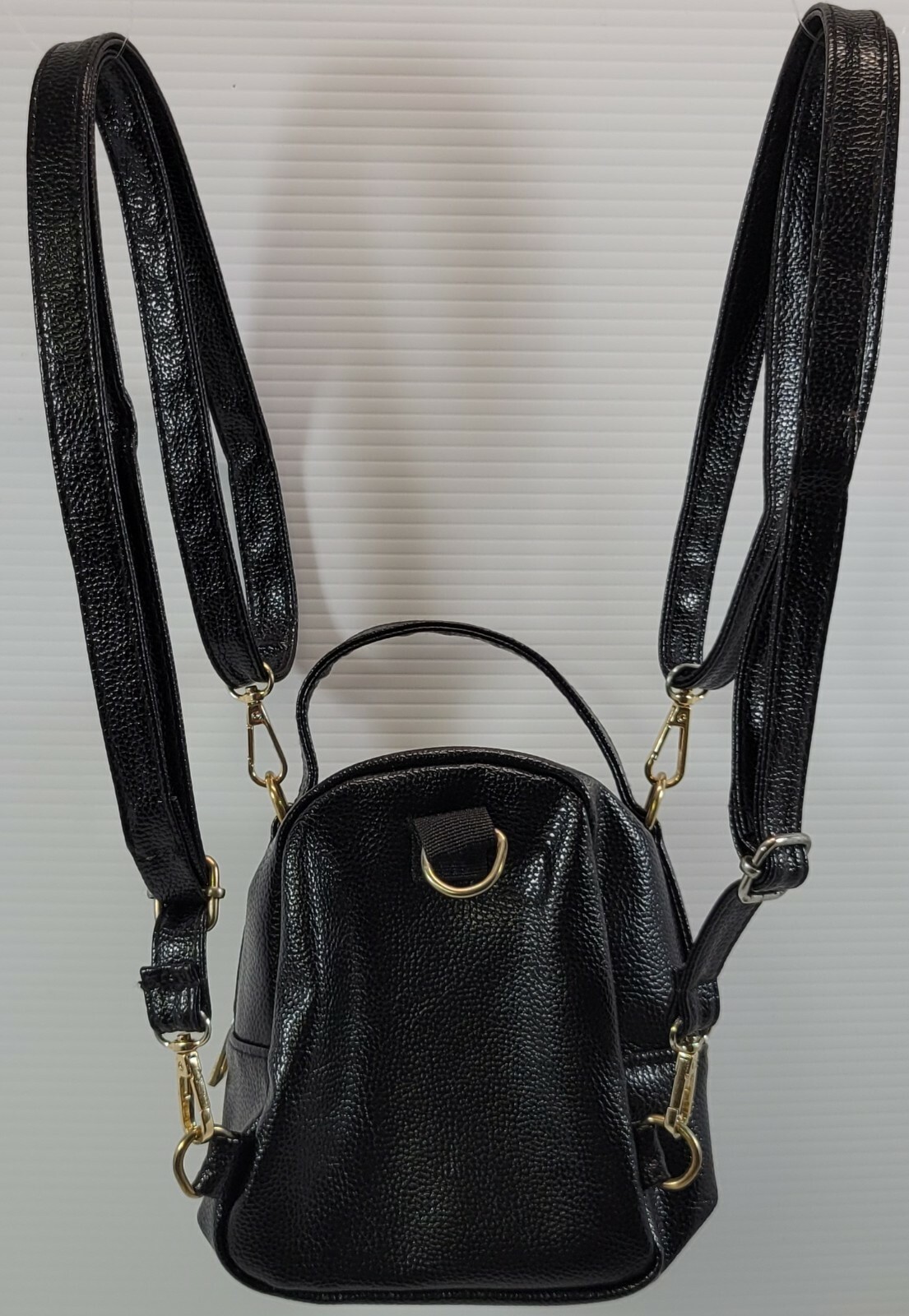MM) Women's Jingpin Faux Black Leather Mini Backpack