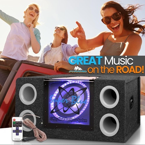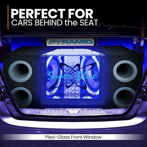 The BNPS102 from Pyramid Car Audio features two 10-inch woofers in a custom-built band-pass box. This drop-in system is designed to create some serious bass, with a monster 1,000 watts of power handling and its bandpass design. As an added bonus, the built-in neon accent lighting gives it an attractive custom look.