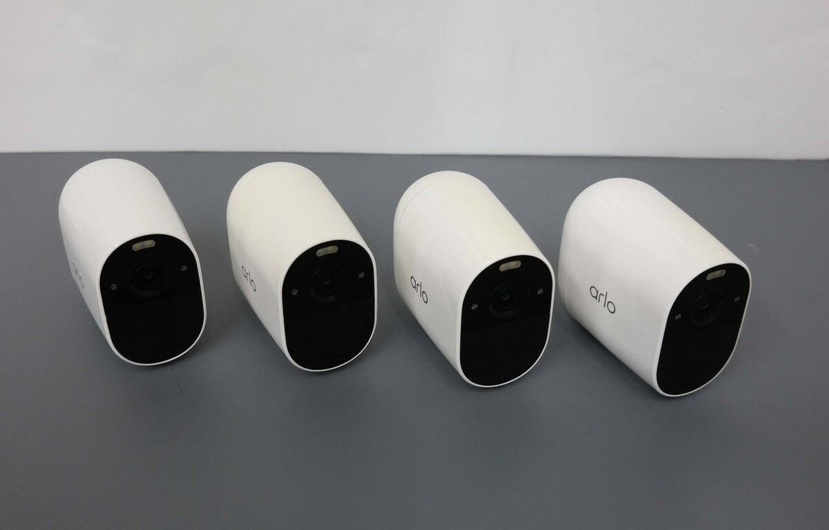 Description: Includes 4x Arlo Essential Camera, 4x Wall Mount and Screw Kit, Charging Cable. Bodies are scratched and yellowed. Mounts are yellowed as well.