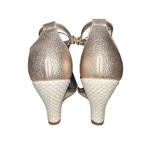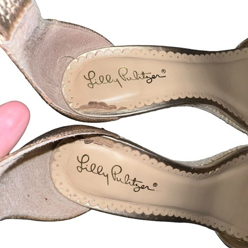 Lilly Pulitzer Bridgette Gold Metallic Leather Wedge Sandal Heels Size 9.5