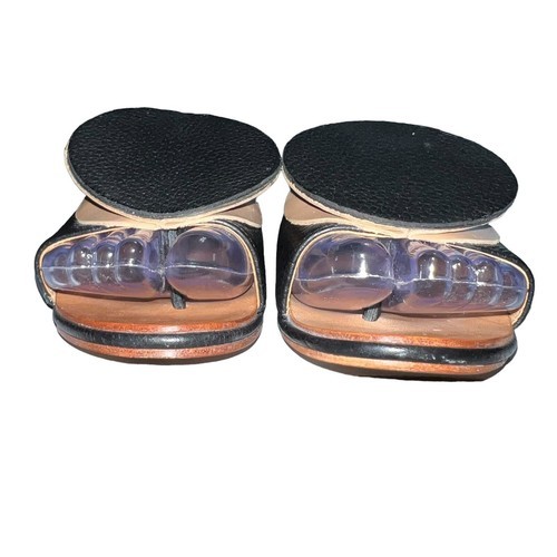 The Palatines Caeleste Slide Sandal in Black and Tan Size 6 Leather Circle Flat