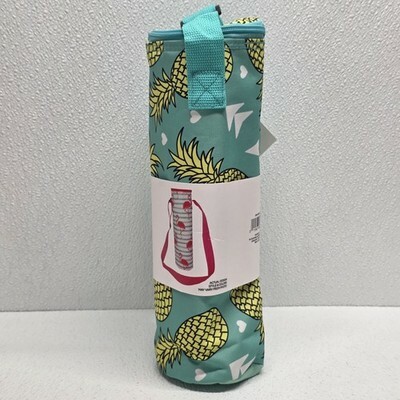 Wine Carrier Bag Insulated Single Bottle Carrying Tote Blue Yellow Pineapple. Small spot on strap, still new unused. See images for condition. Images show actual item that will ship.