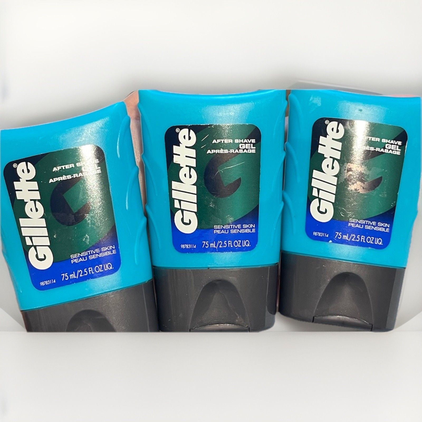 3 Pack Gillette After Shave Gel Sensitive Skin 2.50 oz Each New.