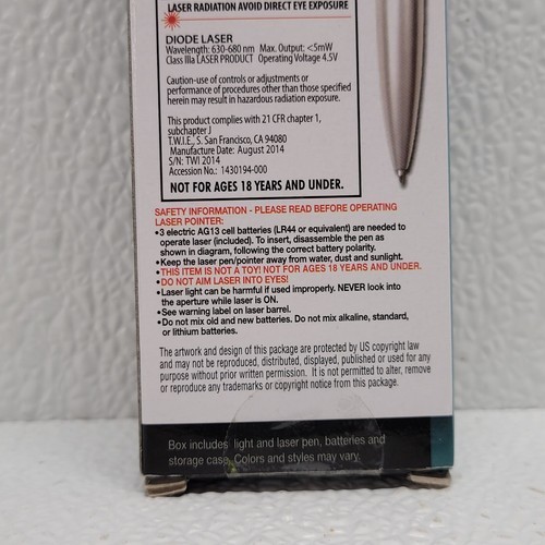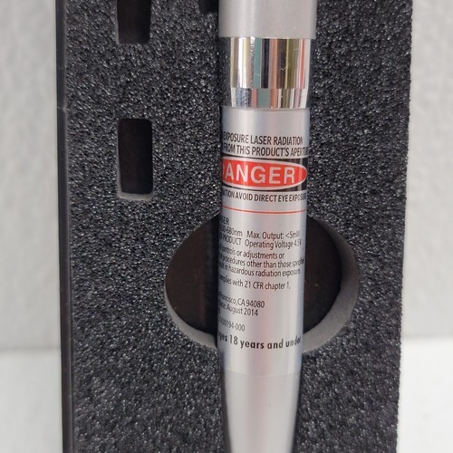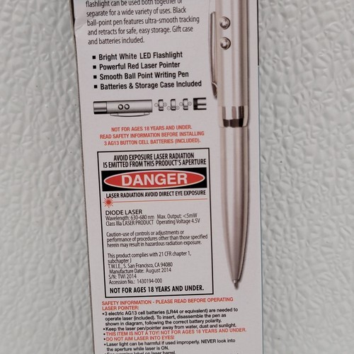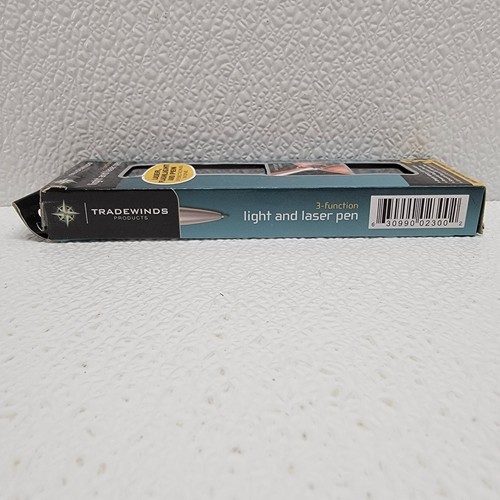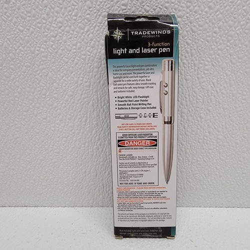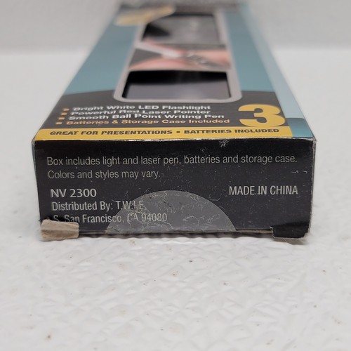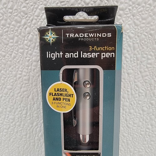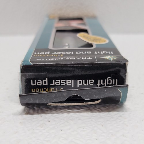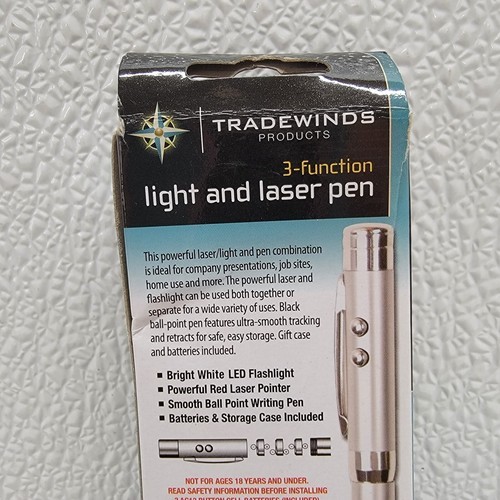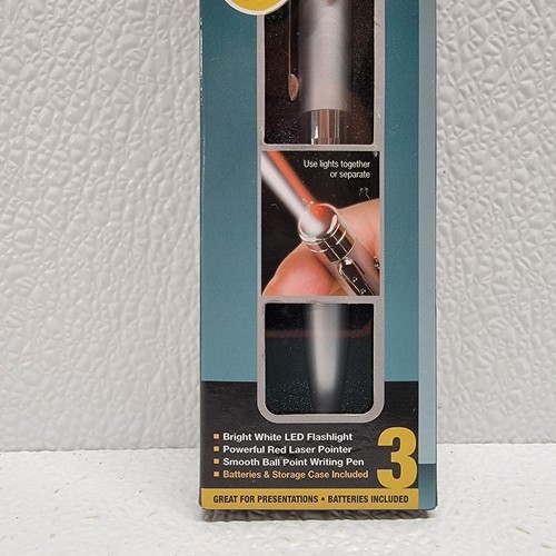 3-Function LED Flashlight Laser Pen Combo Home Office - Tradewinds Products. Black Ink. Small scratch on pen as seen in images. Batteries are installed and flashlight and laser both work. Images show actual item that will ship.