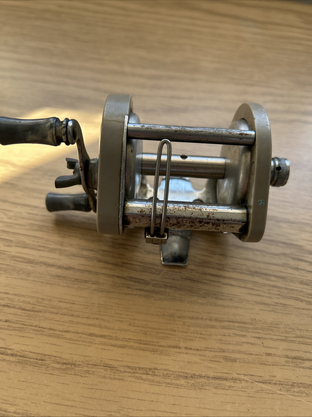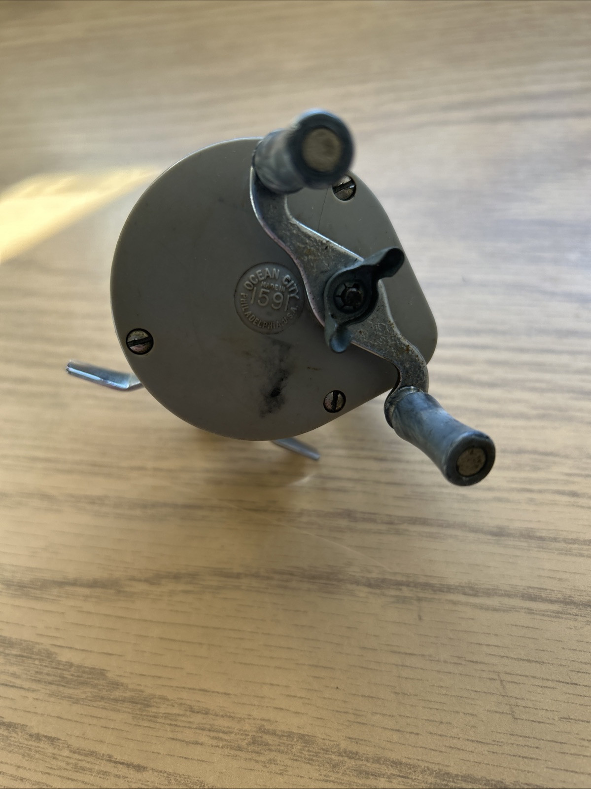 Ocean City 1591 Casting Reel, Made in Philadelphia PA. Reel is in good condition, there are some areas with rust, reels smoothly.