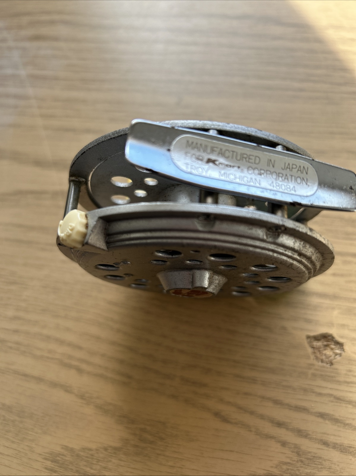 Sportfisher 44 Fly Reel, Made in Japan for K Mart, Reel is in good condition showing small signs of wear, smooth Reel, nice click