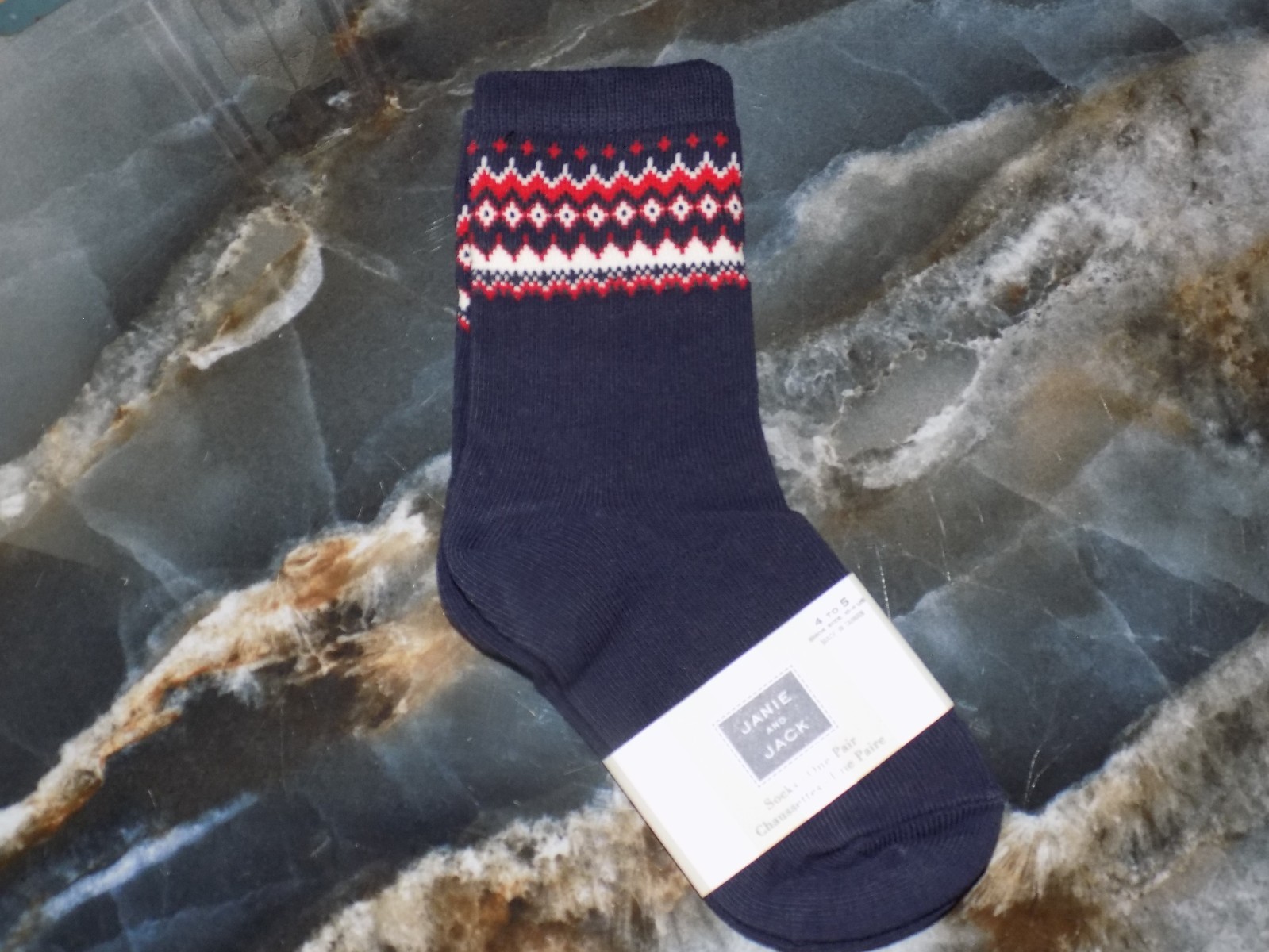 Janie and Jack Navy Blue Fair Isle Ankle Crew Sock Size 4/5 Boy's NEW