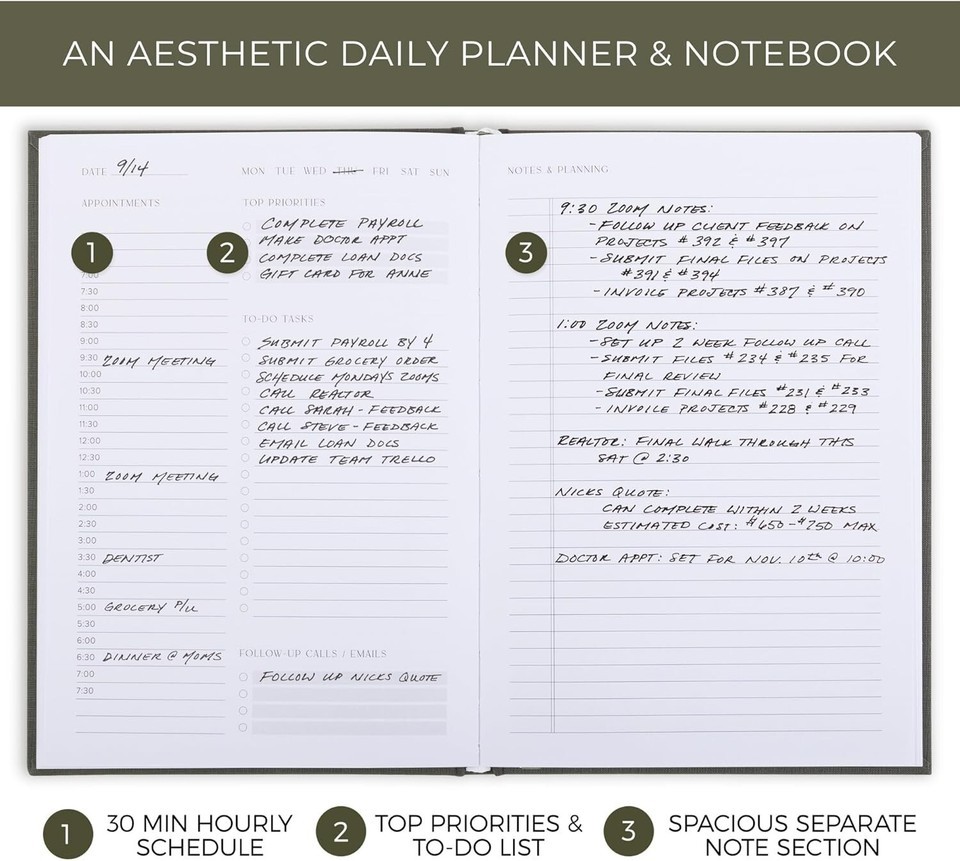 Aesthetic Daily Planner And Notebook With Hourly Schedule 9.25"L x 6.5"W