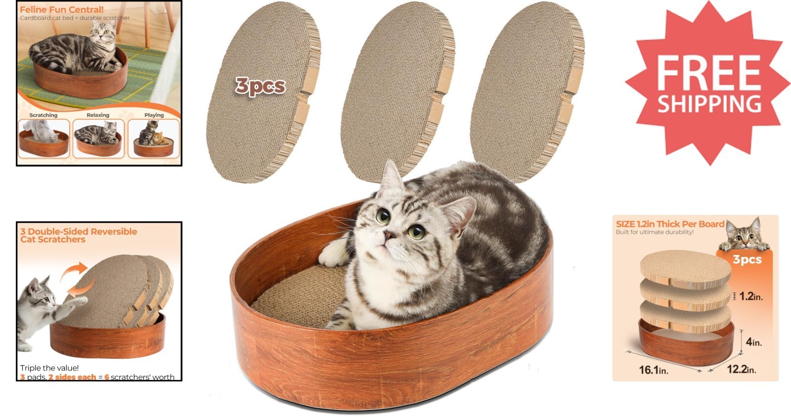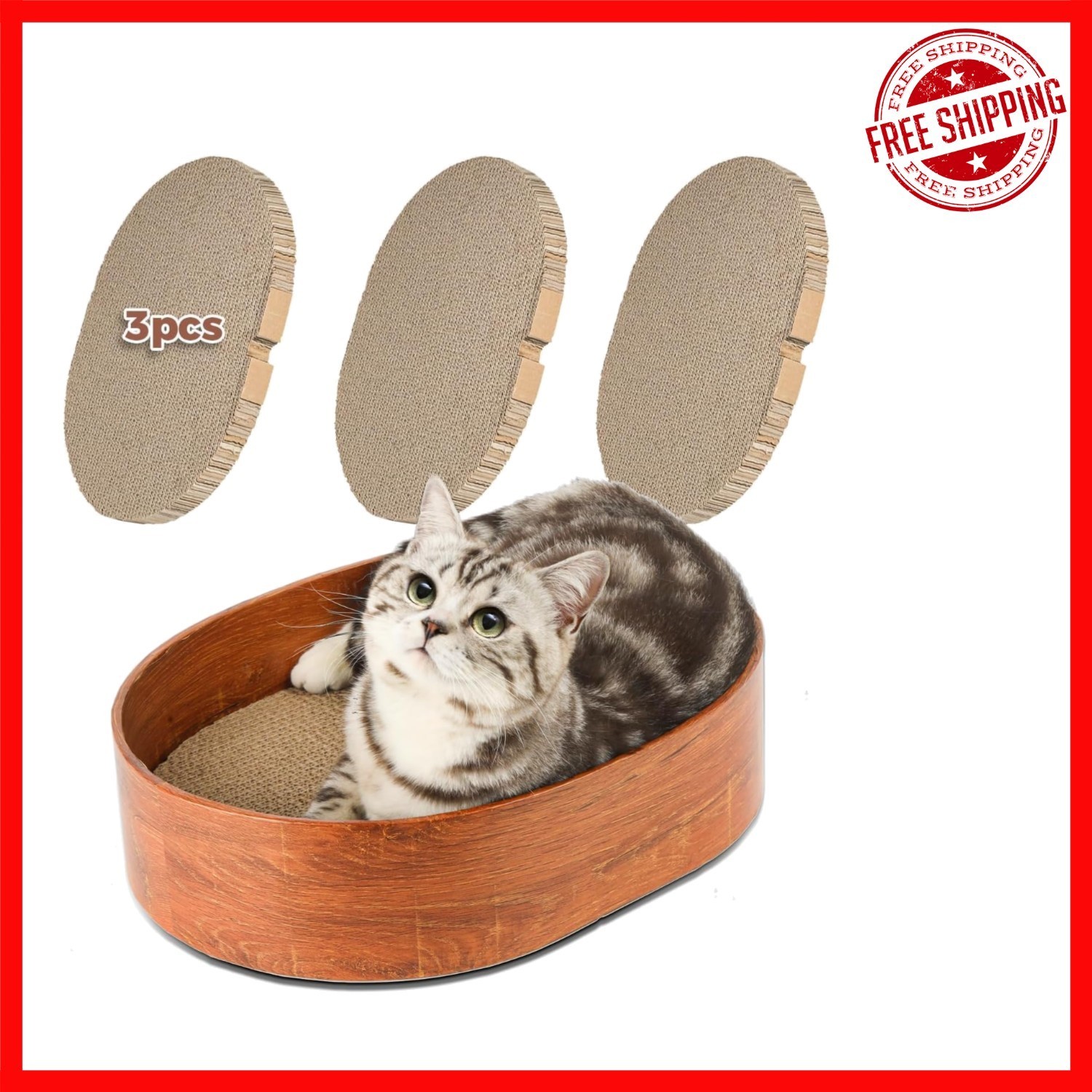 Spacious Oval Cat Scratch Board with 3 Double-Sided Pads - Scratching & Napping