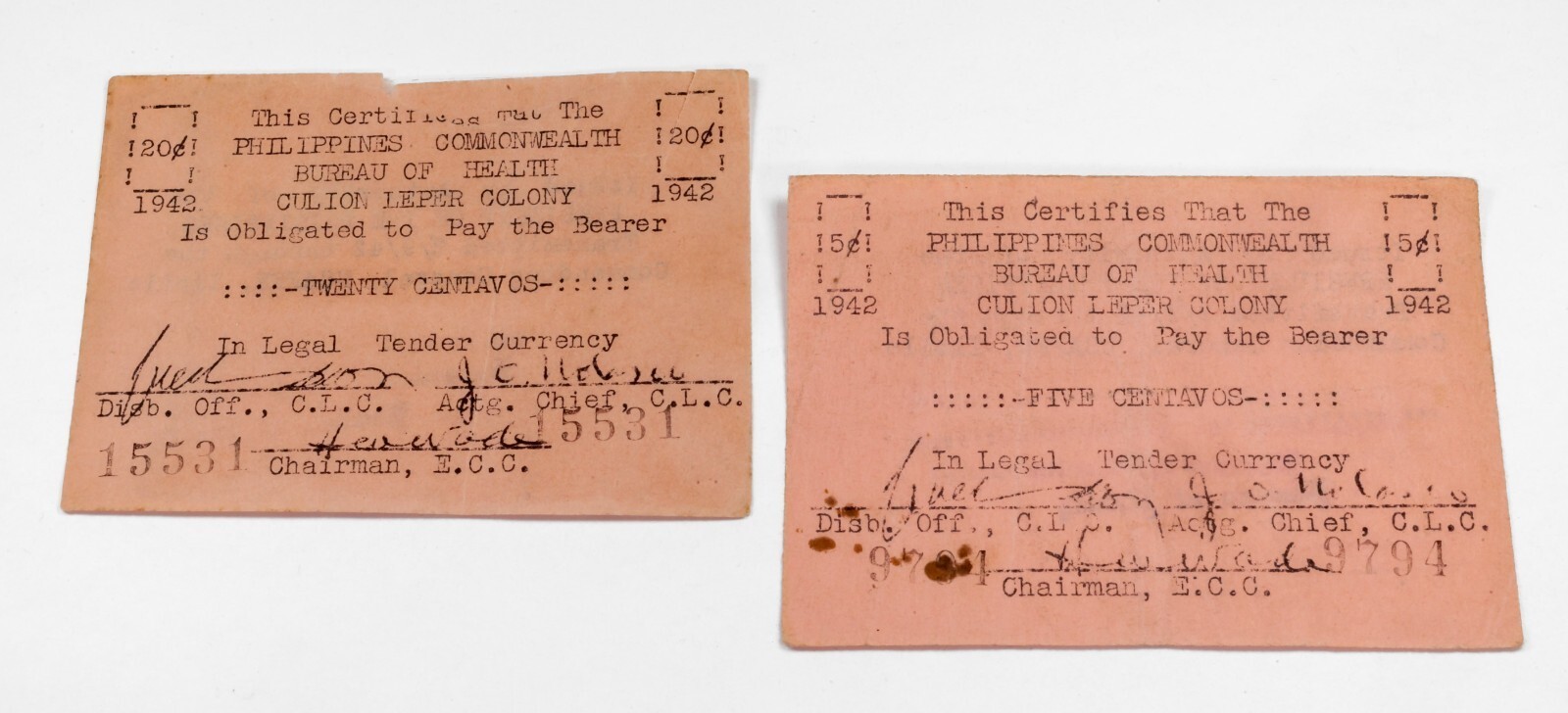 1942 Philippines - Culion Leper Colony 5c 20 Centavos Notes, Lot of 2