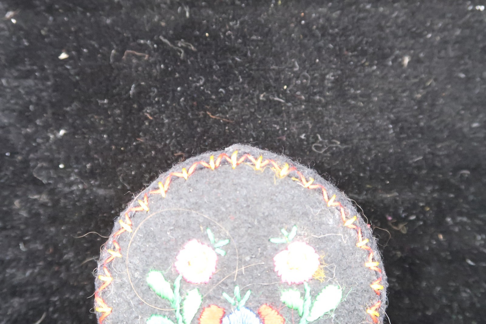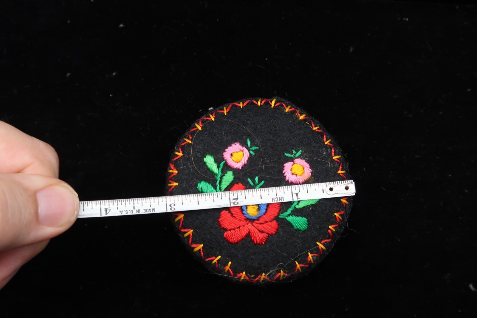 Vtg Round Hand Embroidery Folk Flower Art Felt Wool Trinket Jewelry Sewing Box