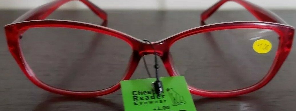 CHEETAH EYEWEAR ~ +1.00 ~ Cat Eye Shape Reading Glasses ~ Red Acrylic Frame