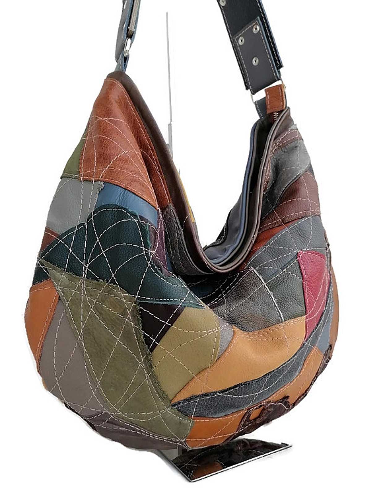 Patchwork Leather Hobo Bag: Handmade Soft Leather Shoulder Purse