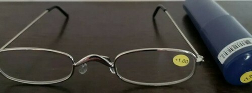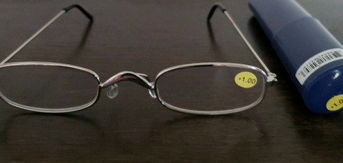 Reading Glasses ~ Eye Glasses w/ Blue Tube Case ~ Silver Frame ~ +1.00 Strength