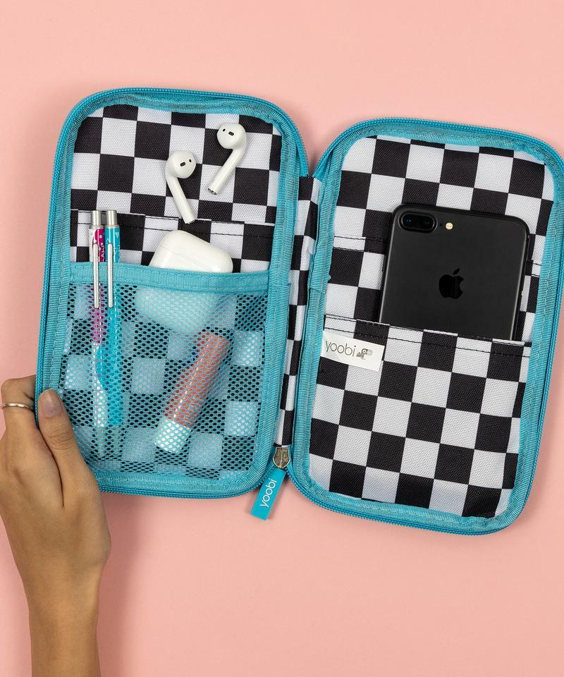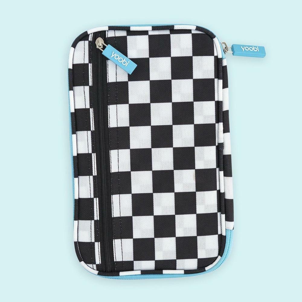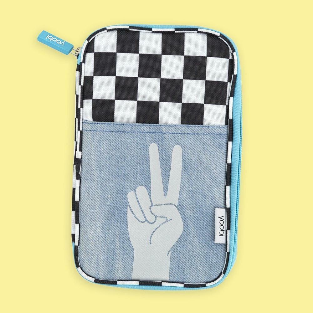 Yoobi Brand Pencil Organizer ~ Black & White Checkered Design w/Peace Sign Hand