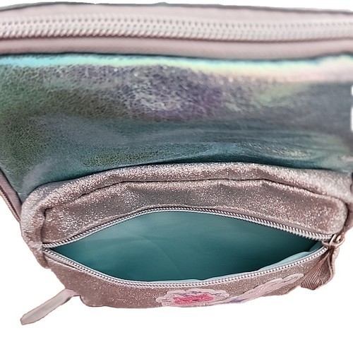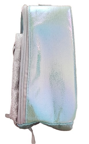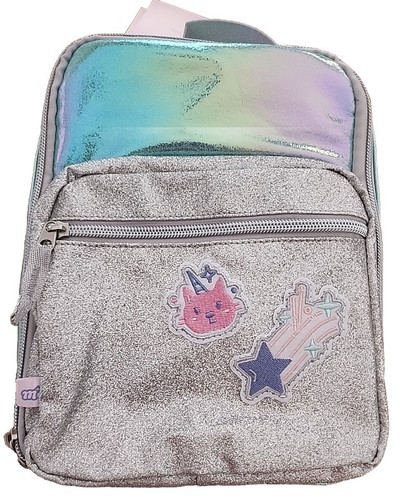 Silver ~ glittery front pocket embellished with a unicorn cat a shooting star patch