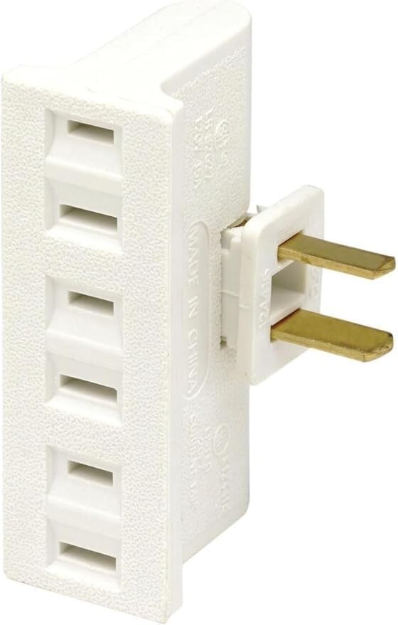 This swivel triple tap adapter is used by homeowners, renters, and office managers to maximize outlet capacity in rooms with limited electrical access?such as older homes, dorm rooms, or workspaces with high device demand. The rotating base solves common plug conflicts by allowing users to reposition the adapter around oversized AC adapters or side-by-side outlets, ensuring all three receptacles remain usable. Designed exclusively for indoor, non-grounded circuits, it safely powers everyday devices like desk lamps, phone chargers, fans, and small kitchen appliances without overloading the circuit. Its understated white finish and compact profile maintain a clean aesthetic, while UL certification ensures dependable performance. Ideal for temporary or permanent use where adding new wiring isn?t feasible, this adapter offers practical, code-compliant convenience with trusted Leviton engineering.